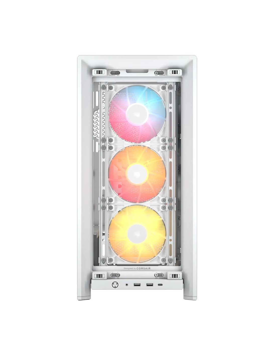 Corsair FRAME 4000D RS ARGB. Factor de forma: Midi Tower, Tipo: PC, Color del producto: Blanco. Factores de forma de la fuente de alimentación compatibles: ATX. Ventiladores frontales instalados: 3x 120 mm, Diámetro de ventiladores frontales soportados: 120,140,200 mm, Diámetro de ventiladores secundarios soportados: 120,140 mm. Tamaños de disco duro soportados: 2.5,3.5", Factor de forma de disco SSD: 2.5". Ancho: 239 mm, Profundidad: 490 mm, Altura: 486 mm