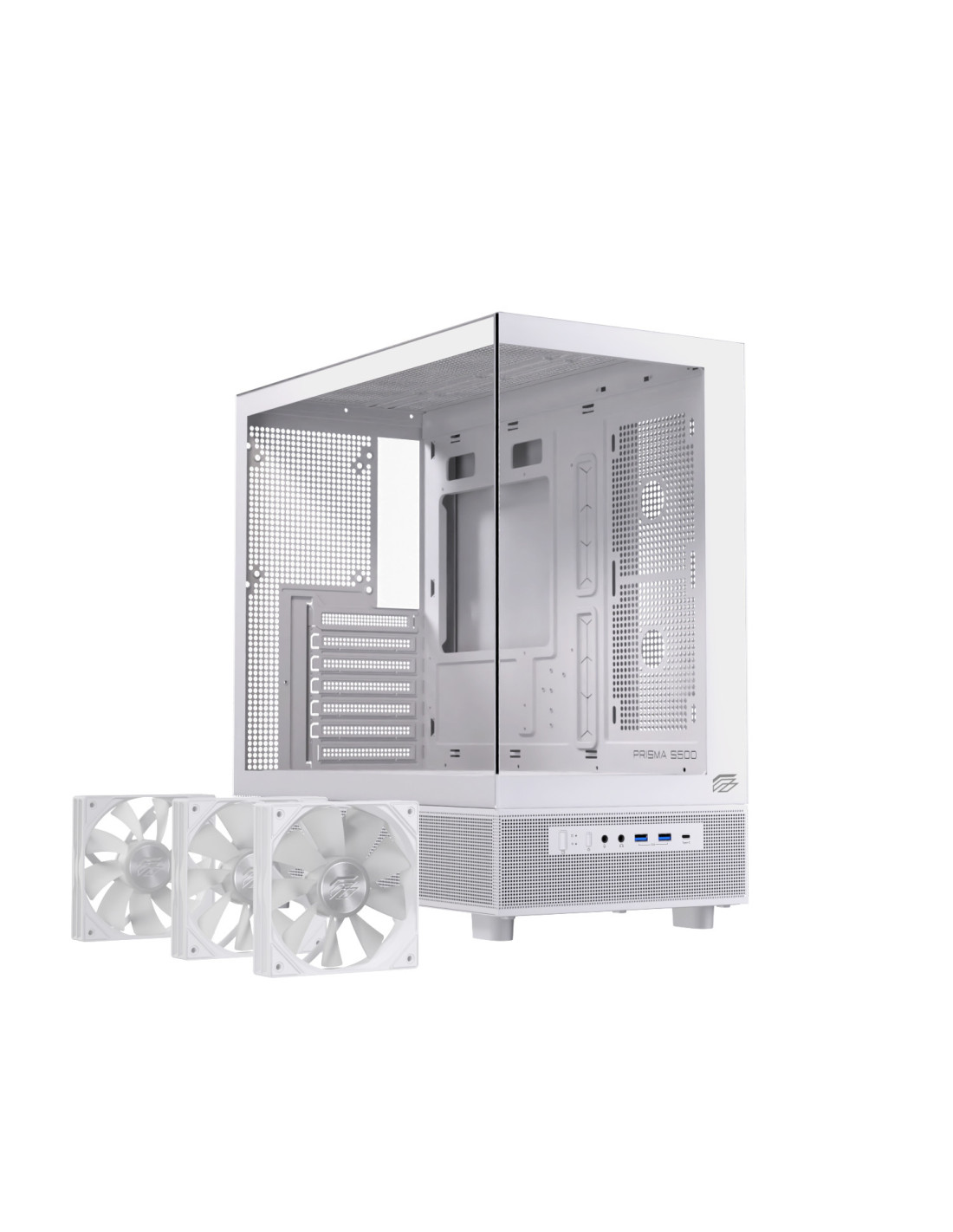 Einarex PRISMA S500 RGB White. Factor de forma: Midi Tower, Tipo: PC, Color del producto: Blanco. Ventiladores laterales instalados: 2x 120 mm, Diámetro de ventiladores secundarios soportados: 120 mm, Ventiladores traseros instalados: 1x 120 mm. Tamaños de disco duro soportados: 2.5,3.5", Factor de forma de disco SSD: 2.5". Ancho: 230 mm, Profundidad: 434 mm, Altura: 457 mm. País de origen: China