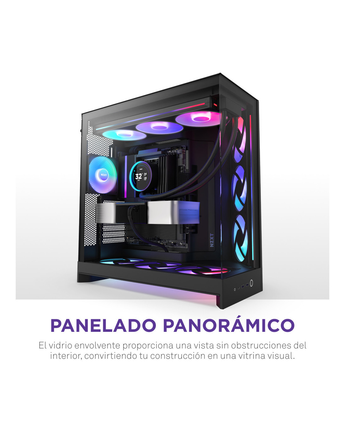 NZXT H9 Flow RGB. Factor de forma: Midi Tower, Tipo: PC, Color del producto: Negro. Ventiladores frontales instalados: 3x 140 mm, Diámetro de ventiladores frontales soportados: 120,140 mm, Ventiladores traseros instalados: 1x 120 mm. Tamaños de disco duro soportados: 2.5,3.5". Ancho: 315 mm, Profundidad: 481 mm, Altura: 506 mm