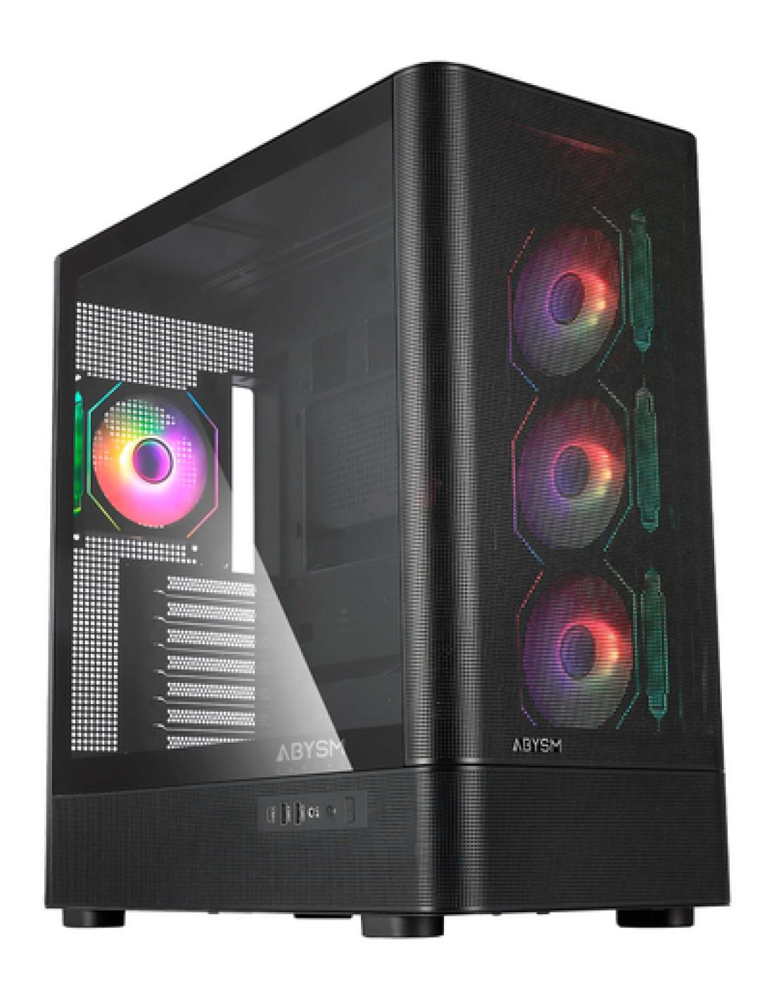 La ventana lateral de cristal templado exhibe con orgullo el interior de tu configuración, y su panel frontal de rejilla optimiza el flujo de aire, garantizando una refrigeración eficiente para los componentes más exigentes.