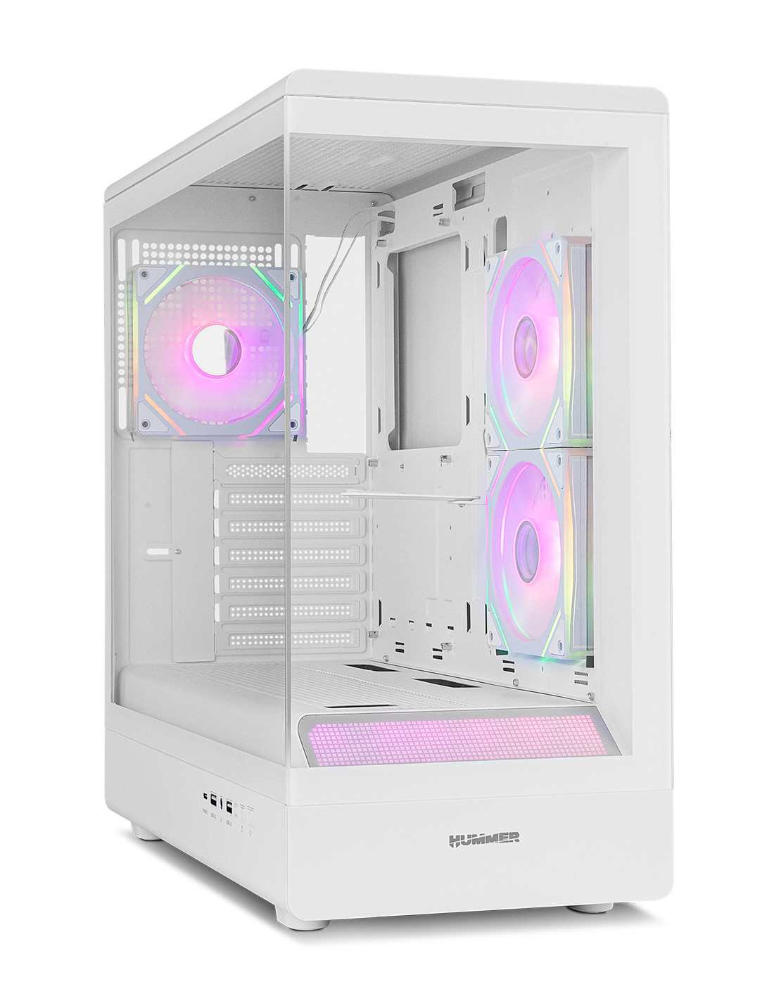 Esta semitorre de Nox, disponible en blanco y negro, ha sido diseñada para conseguir que tu ordenador sea una máquina espectacular. Su impresionante estética minimalista crea un espectáculo visual de otro nivel con su ventana lateral panorámica frameless, gracias a sus dos cristales templados uno situado en su frontal y otro en el lateral, permitiendo que tengas una visión total del interior de tu build.
