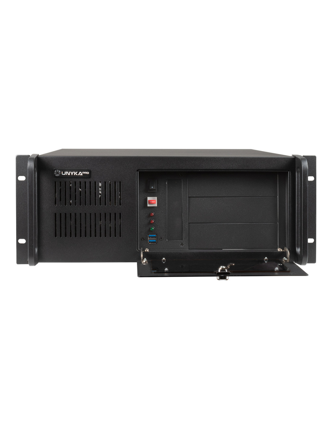 El modelo UK4229 EVO es una caja Rack de 19" en formato de 4U con profundidad de 480 mm, como novedad su frontal contiene dos USB 3.0 y incluye un ventilador de 120 mm trasero y dos de 80 mm en los laterales para una mejor refrigeración. Su diseño en negro mate, así como su estructura y estilo, lo convierten en una opción perfecta para entornos profesionales. Para mayor seguridad, su frontal viene equipado con cierre de llave.