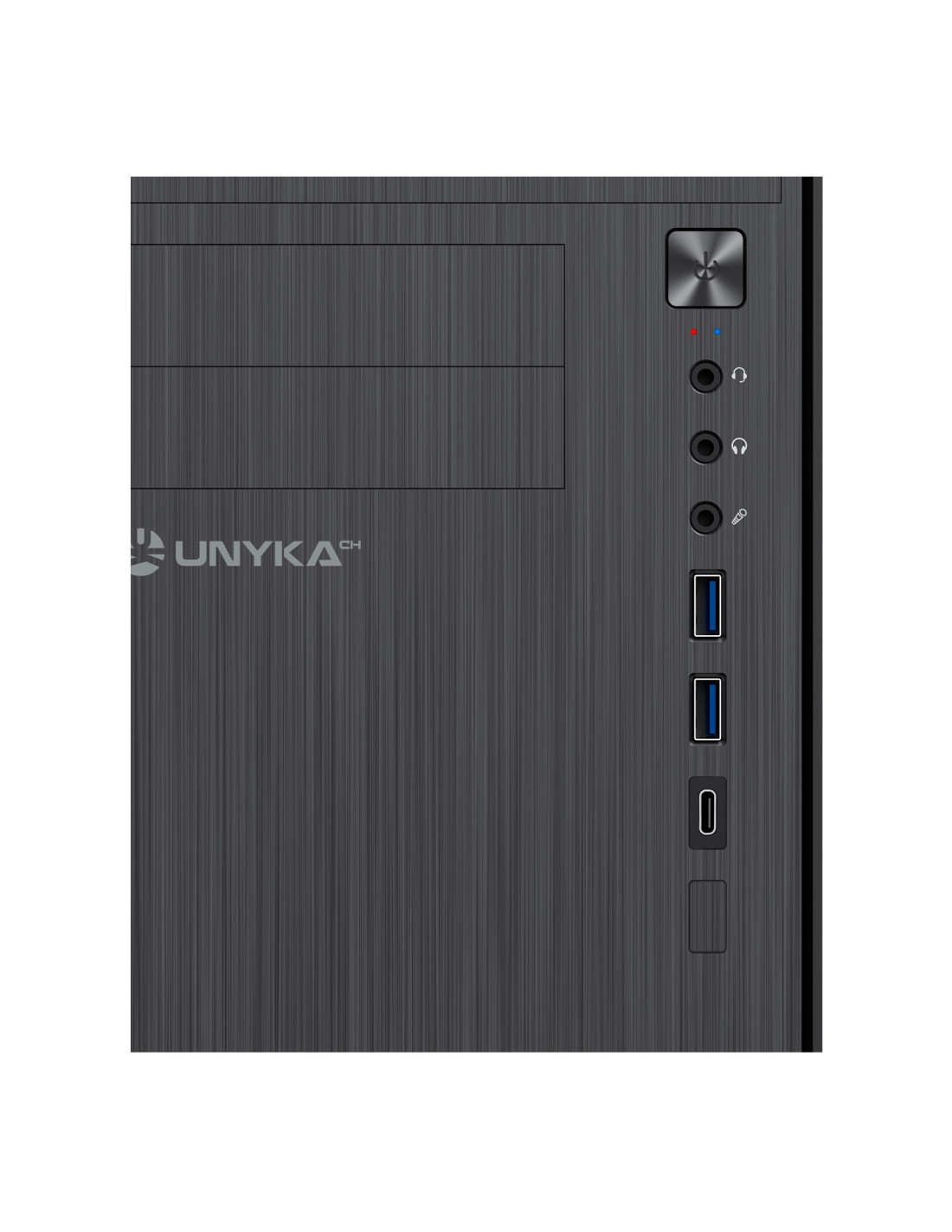 Si estás buscando una caja Micro ATX con un diseño discreto y de corte clásico, la AERO C12 V2 de UNYKAch es la opción perfecta para ti. Esta caja cuenta con un frontal elegante con efecto de aluminio cepillado. Además, la AERO C12 V2 incluye conexiones para dos puertos USB 3.0 y un puerto USB Type C 2.0, lo que permite una fácil conexión de periféricos y dispositivos externos de alta velocidad. También cuenta con conexiones para HD Audio y micrófono para una experiencia de audio de alta calidad.