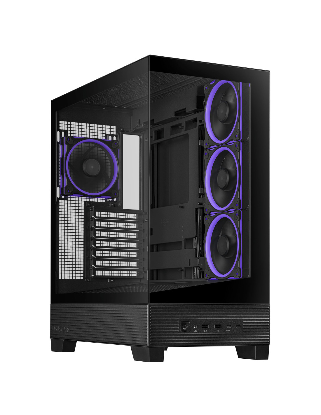 ASUS A31 Plus TG ARGB BLACK. Factor de forma: Midi Tower, Tipo: PC, Color del producto: Negro. Ubicación de fuente de alimentación: Fondo. Ventiladores laterales instalados: 3x 120 mm, Ventiladores traseros instalados: 1x 120 mm, Diámetro de ventiladores traseros soportados: 120,140 mm. Tamaños de disco duro soportados: 2.5,3.5". Ancho: 238 mm, Profundidad: 511 mm, Altura: 435 mm