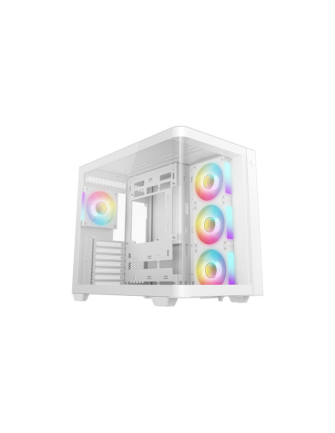 DeepCool CG530U 4F. Factor de forma: Torre, Tipo: PC, Color del producto: Blanco. Ubicación de fuente de alimentación: Parte trasera. Ventiladores laterales instalados: 3x 120 mm, Diámetro de ventiladores secundarios soportados: 120,140 mm, Ventiladores traseros instalados: 1x 120 mm. Tamaños de disco duro soportados: 2.5,3.5". Ancho: 285 mm, Profundidad: 475 mm, Altura: 380 mm
