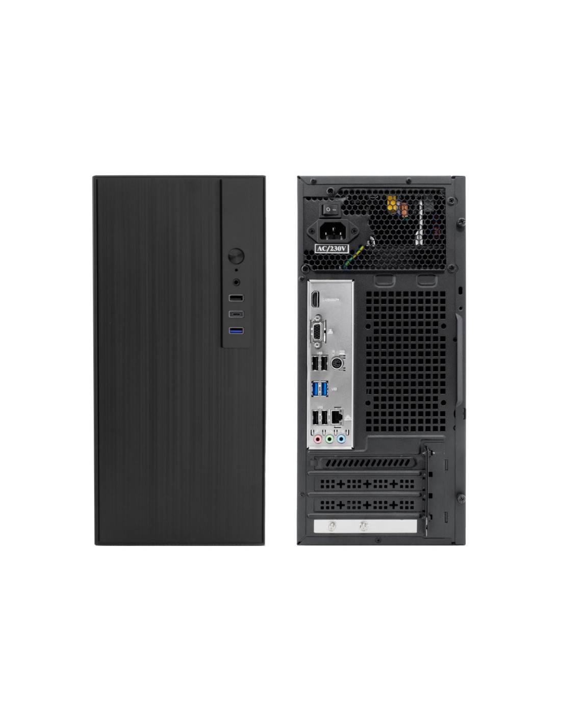 Chasis Micro ATX de color negro fabricado en acero SGCC de 0.8mm con frontal de ABS