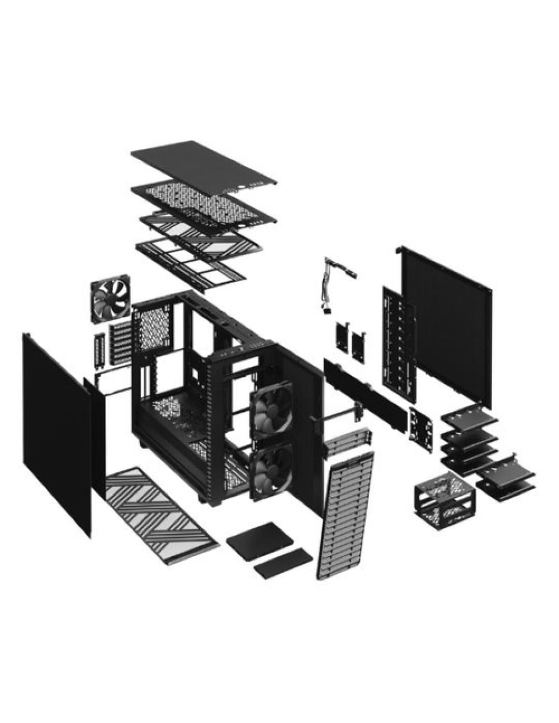 Fractal Design Define 7. Factor de forma: Midi Tower, Tipo: PC, Color del producto: Negro. Ubicación de fuente de alimentación: Fondo, Factores de forma de la fuente de alimentación compatibles: ATX. Diámetro de ventiladores frontales soportados: 120,140 mm, Diámetro de ventiladores traseros soportados: 120,140 mm, Diámetros de ventiladores superiores soportados: 120,140 mm. Tamaños de disco duro soportados: 2.5,3.5". Peso: 13,5 kg