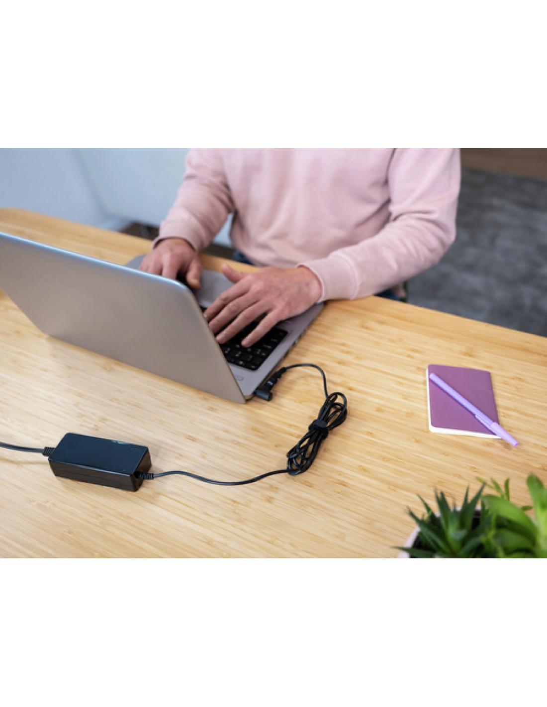 Sistema de protección inteligenteEl cargador protege su portátil frente a sobrecargas y cortocircuitos para que esté protegido ante posibles daños y garantiza una recarga segura en todo momento. Su diseño resistente y energéticamente eficiente también ayuda a evitar el uso innecesario de energía y el sobrecalentamiento.