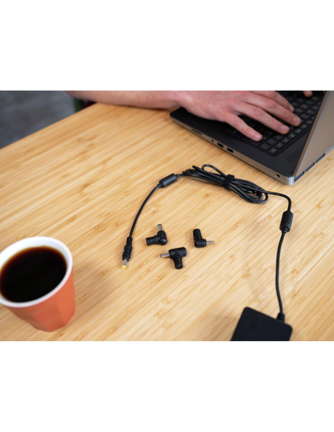 Compañero de viajeEl diseño compacto y fiable del cargador lo hace perfecto para llevar consigo, independientemente de adonde vaya. Funciona con voltajes de tomas de corriente de pared en todo el mundo, lo que significa que se puede cargar el portátil con el cargador Primo en cualquier lugar.