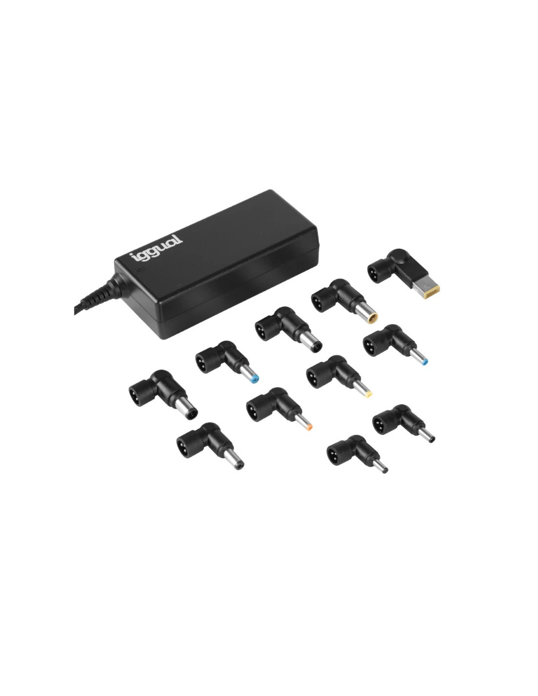 iggual Cargador Universal Automático CUA-11T-65W. Utilizar con: Portátil, Tipo de fuente de alimentación: Interior, Voltaje de entrada: 100 - 240 V. Color del producto: Negro. Longitud de cable: 2,4 m. Cantidad por paquete: 1 pieza(s)