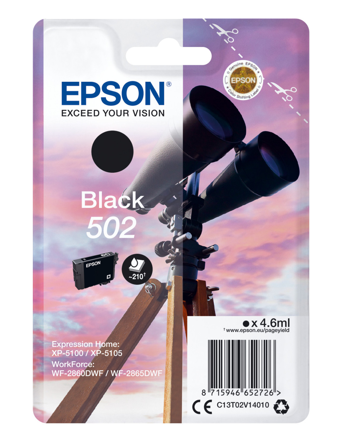 Disfruta de copias fiables, nítidas y de colores vivos con una inversión mínima gracias a la tinta 502 de cuatro colores de Epson. Con la combinación de tintas negras pigmentadas y de colores de tipo colorante, este pack de tintas crea copias definidas y llenas de color.