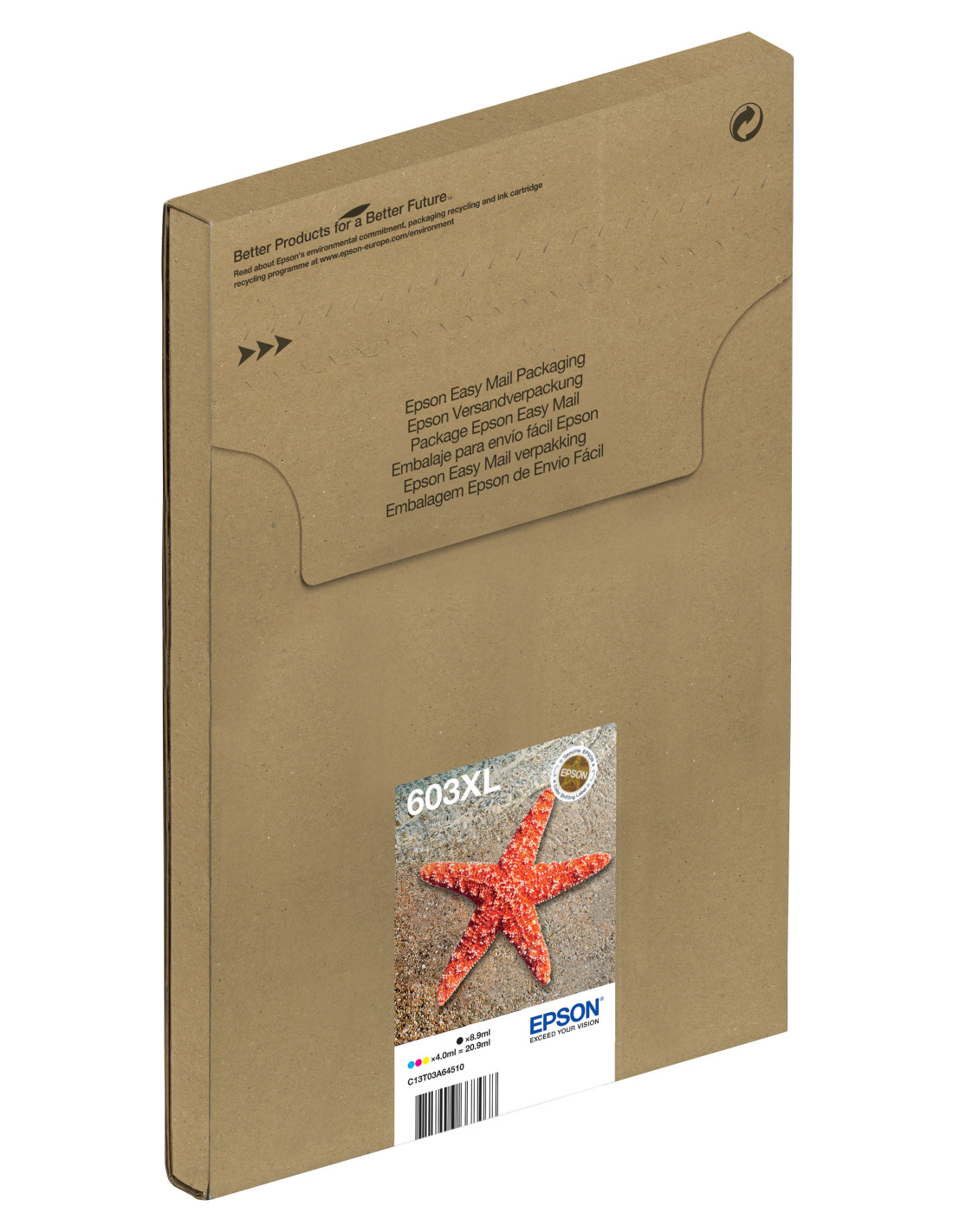 Epson Multipack 4-colours 603XL EasyMail. Tipo de cartucho de tinta: Alto rendimiento (XL), Volumen de tinta negra: 8,9 ml, Tipo de suministro: Multipack, Volumen de tinta de color: 4 ml, Colores de impresión: Negro, Cian, Magenta, Amarillo, Cantidad por paquete: 1 pieza(s)