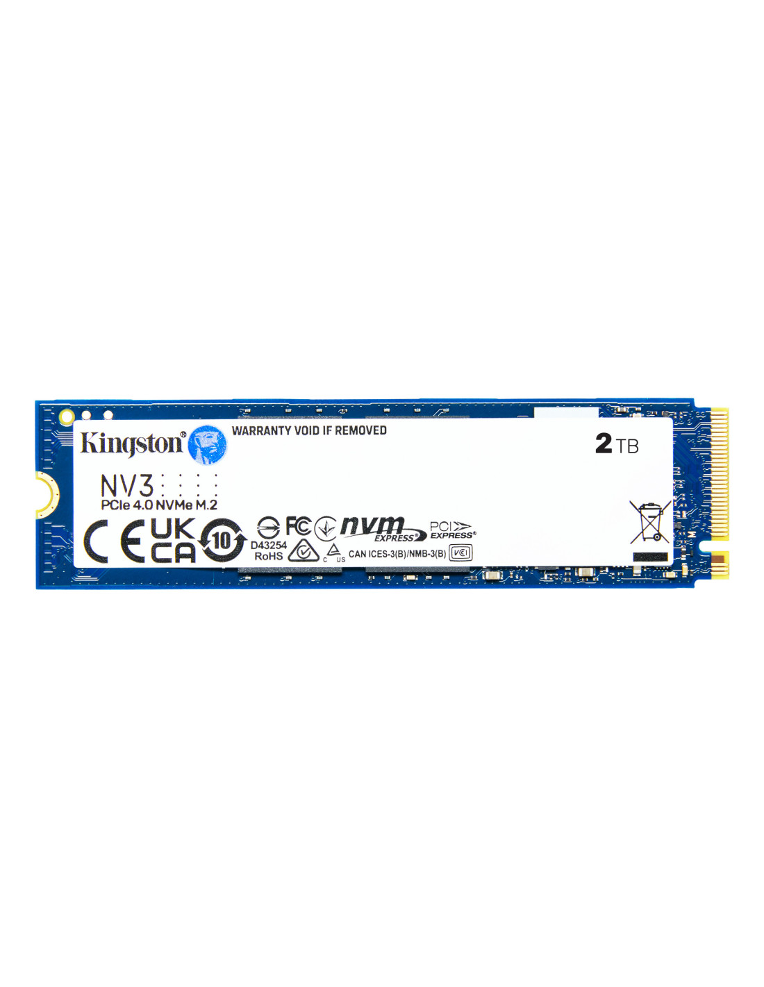 Kingston Technology 2000G NV3 M.2 2280 NVMe SSD. SDD, capacidad: 2 TB, Factor de forma de disco SSD: M.2, Velocidad de lectura: 6000 MB/s, Velocidad de escritura: 5000 MB/s, Componente para: PC/ordenador portátil