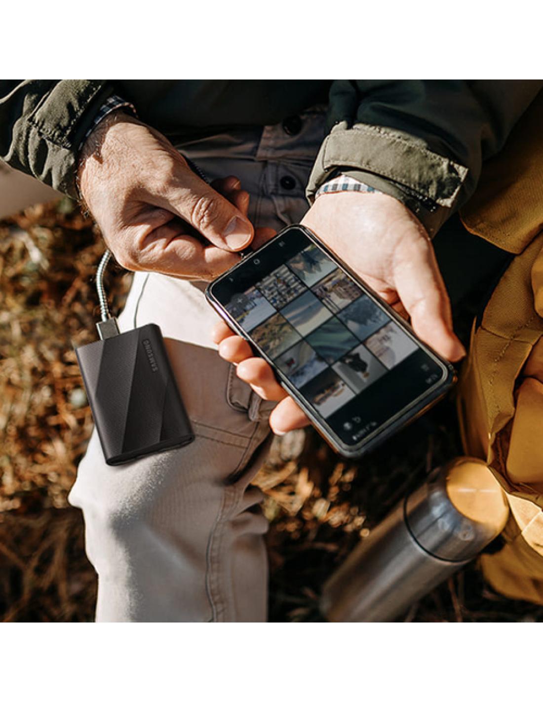 T9 está disponible en versiones de 1TB, 2TB y 4TB para ofrecerte mucho espacio de almacenamiento en un formato compacto y ligero de solo 122 g de peso. Gracias a su acabado rugoso y antideslizante, puedes llevarlo en la mano con total seguridad y comodidad.