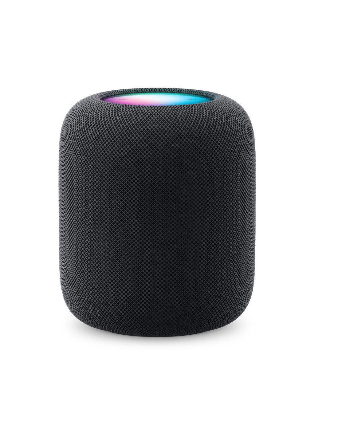 Apple HomePod. Asistente virtual: Apple Siri, Forma: Cilindro, Color del producto: Negro. Tipo de imán: Neodimio, Diámetro del woofer: 10,2 cm, Control de volumen: Tocar. Tecnología de conectividad: Inalámbrico, Wi-Fi estándares: Wi-Fi 4 (802.11n). Alimentación: Corriente alterna. Ancho: 142 mm, Profundidad: 142 mm, Altura: 168 mm