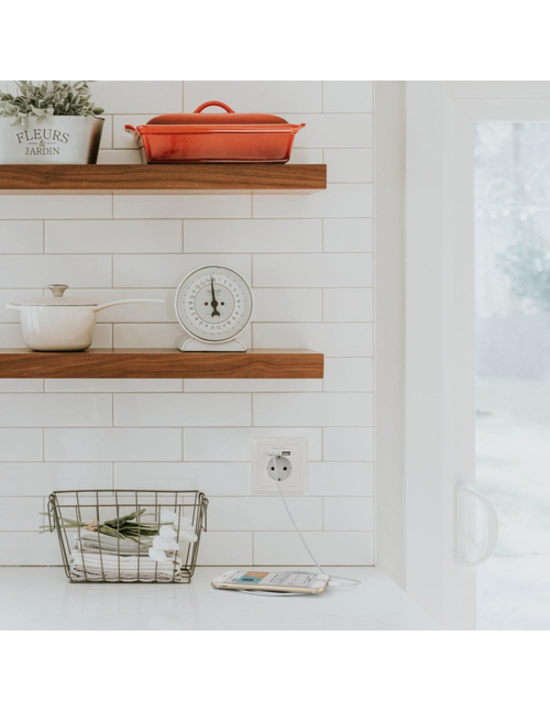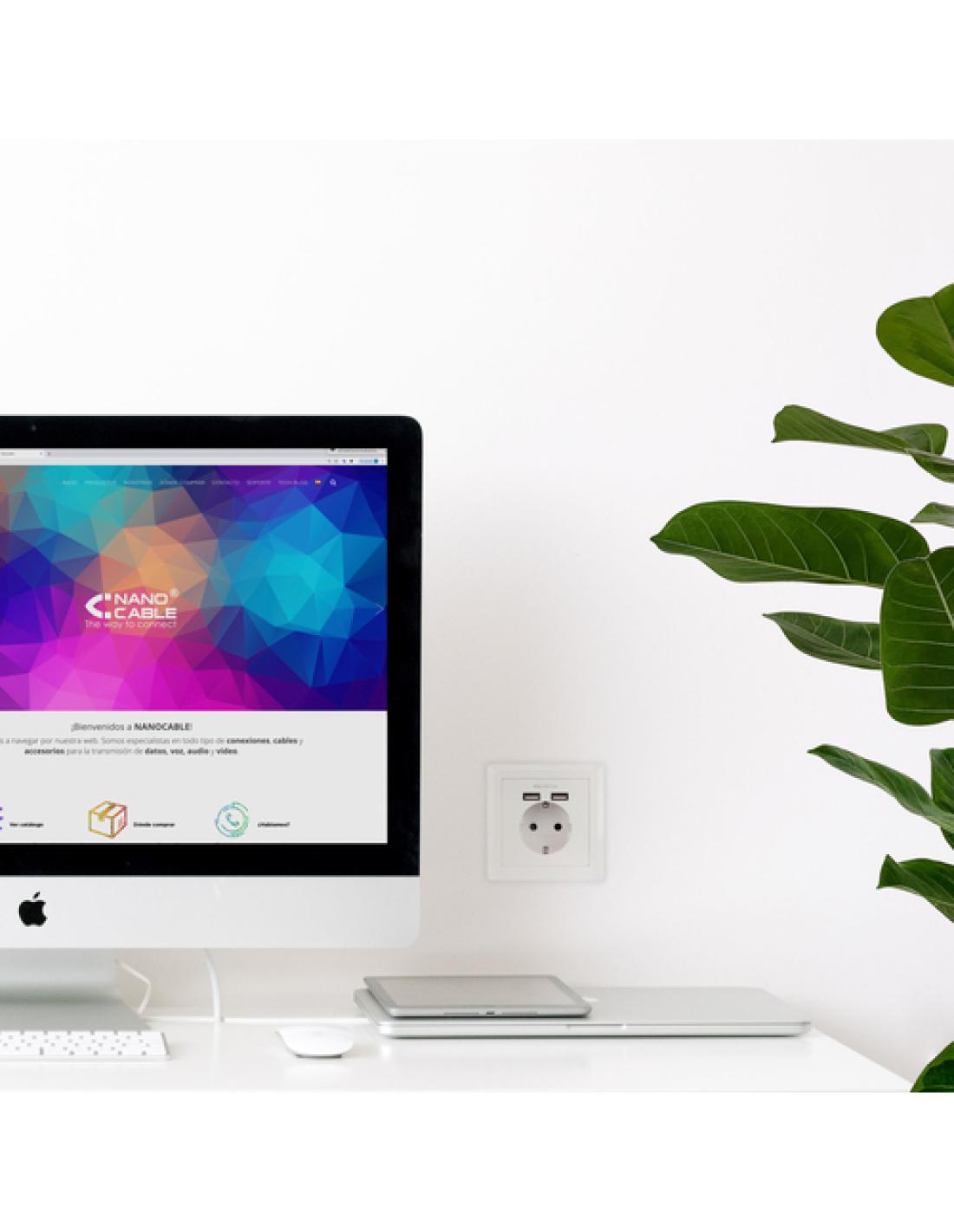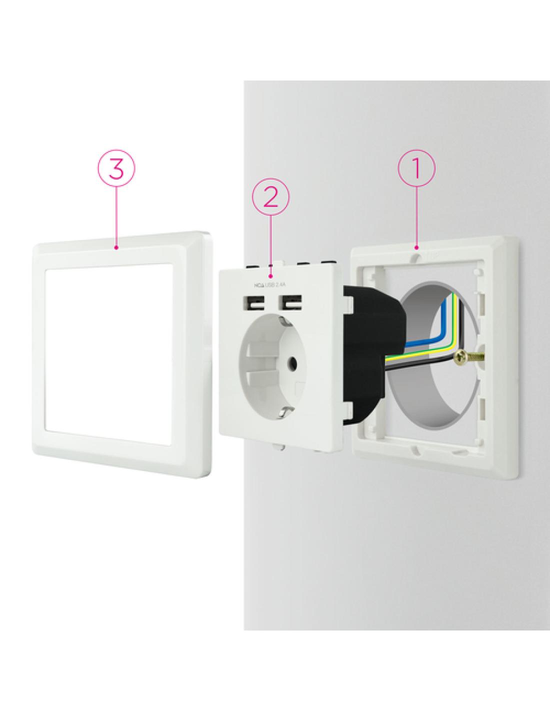 Nanocable Base de enchufe de pared tipo schuko con 2 tomas USB Max. 2.4A, blanca