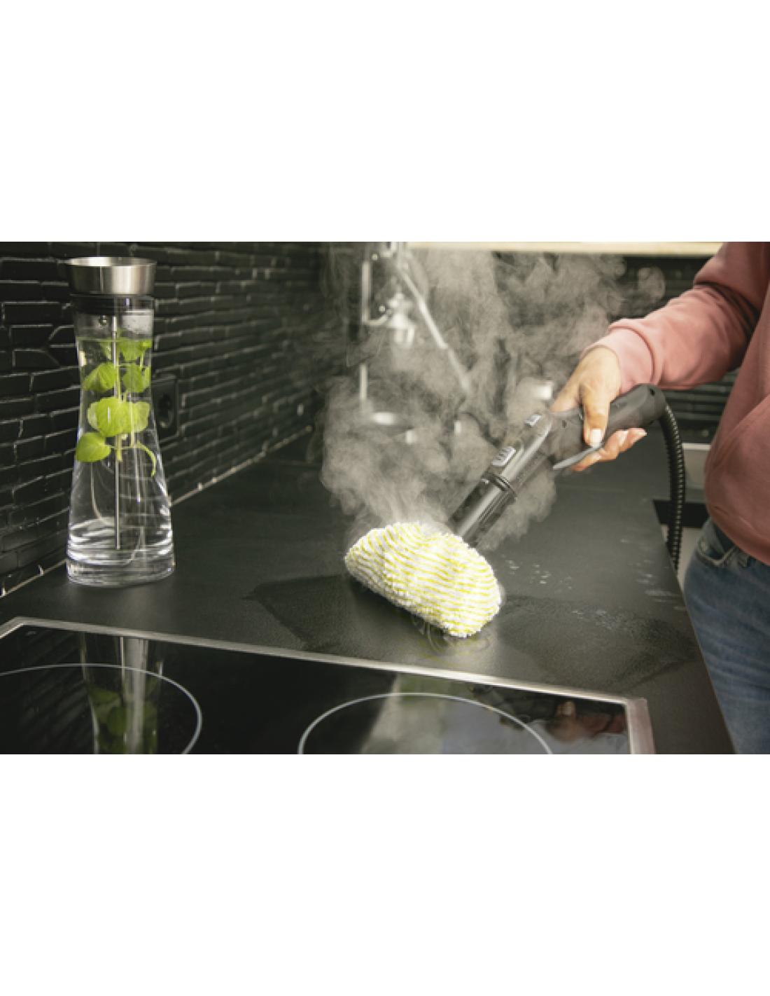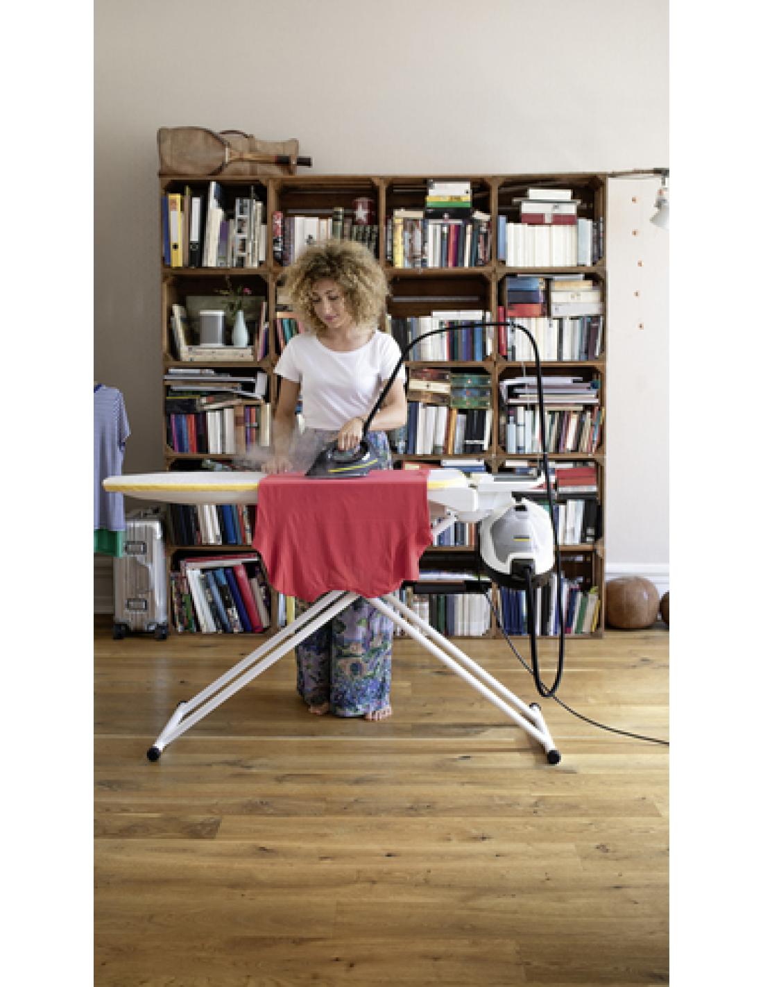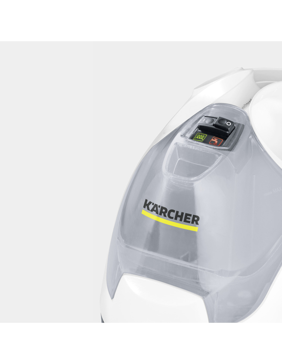 La extraordinariamente cómoda SC 4 EasyFix Iron limpia sin productos químicos y se puede utilizar en toda la casa. La intensidad del vapor se regula con dos posiciones para ajustarla en función de las superficies y la suciedad. Mediante una limpieza en profundidad con la limpiadora de vapor de Kärcher se elimina hasta el 99,999 % de los virus* y el 99,99 % de todas las bacterias comunes** de las superficies duras que se encuentran normalmente en el hogar. En los azulejos, la placa de cocina, la campana extractora y hasta en las ranuras más pequeñas, el equipo ofrece, con los accesorios adecuados, unos resultados de limpieza impecables. Incluso la suciedad resistente se elimina con eficacia. Con la plancha de vapor a presión incluida se reduce a la mitad el tiempo de planchado habitual. La boquilla para suelos flexible EasyFix sorprende por su articulación flexible, que proporciona la máxima ergonomía, y por la tecnología de láminas, que permite alcanzar unos resultados de limpieza perfectos. Con el cómodo sistema de cierre de autofijación, el paño para suelos se fija con facilidad y rapidez a la boquilla para suelos y se retira sin tocar la suciedad. El depósito de agua extraíble se puede rellenar de forma permanente: para limpiar sin interrupciones. Otros detalles de equipamiento: compartimento para el cable integrado, compartimento de almacenaje para accesorios, posición de estacionamiento para la boquilla para suelos.