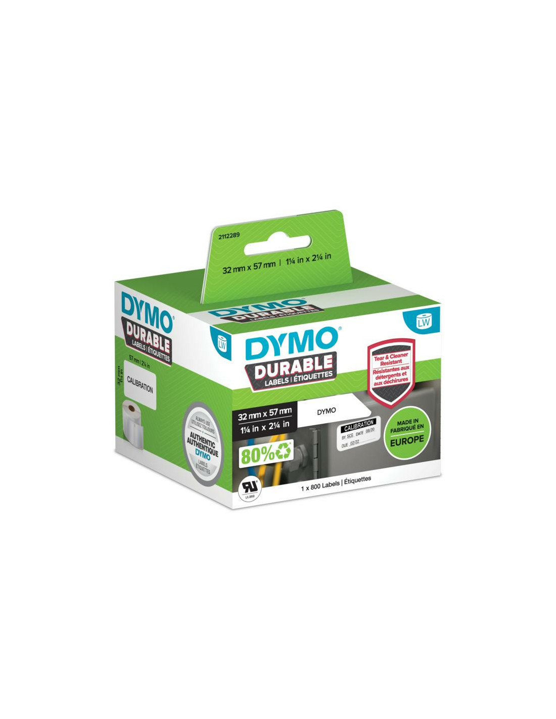 DYMO Durable. Color del producto: Blanco, Tipo de etiqueta: Etiqueta para impresora autoadhesiva, Material: Polipropileno (PP). Anchura de etiqueta: 5,7 cm, Altura de etiqueta: 3,2 cm, Peso: 290 g. Etiquetas por paquete: 800 pieza(s), Etiquetas por rollo: 800 pieza(s). País de origen: Bélgica