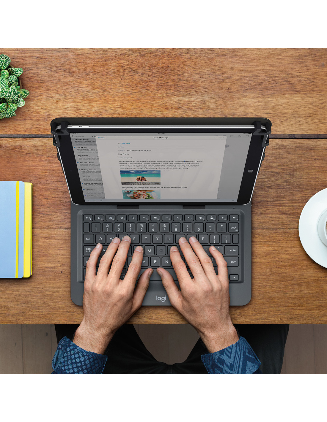 Logitech 920-008336. Diseño de teclado: QWERTY, Idioma del teclado: Español, Vida útil de teclas: 5 millón de caracteres. Marca compatible: Cualquier marca, Compatibilidad: iPad Air (3.ª generación) iPad Air (2.ª generación) iPad Air (1.ª generación) iPad (4.ª..., Color del producto: Negro. Tecnología de conectividad: Inalámbrico, Interfaz del dispositivo: Bluetooth. Fuente de energía: Batería, Tipo de batería: CR2032, Tecnología de batería: Ión de litio. Sistemas operativos móviles soportados: Android, iOS