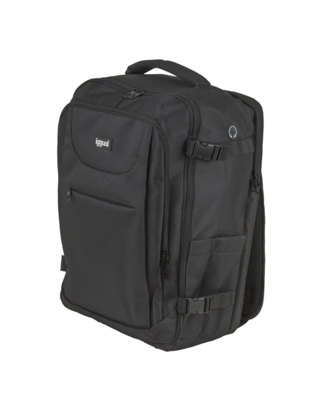 La mochila para viajar de iggual tiene un compartimento independiente para portátil y tablet que admite dispositivos de hasta 17”. El bolsillo principal de gran capacidad tiene correas internas para evitar que se mueva y se arrugue la ropa.