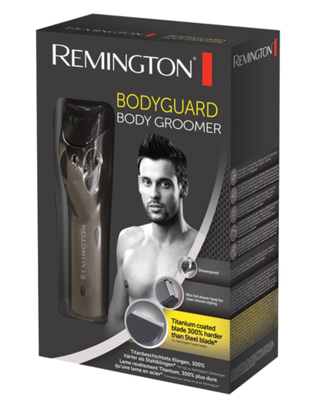 El recortador para el vello corporal Bodyguard dispone de un peine extraíble que permite variar la longitud, además de una cuchilla Comfort Tip para piel sensible, que ayuda a evitar cortes y arañazos. Se puede utilizar hasta 40 minutos sin cable. • Cuchillas con revestimiento de titanio