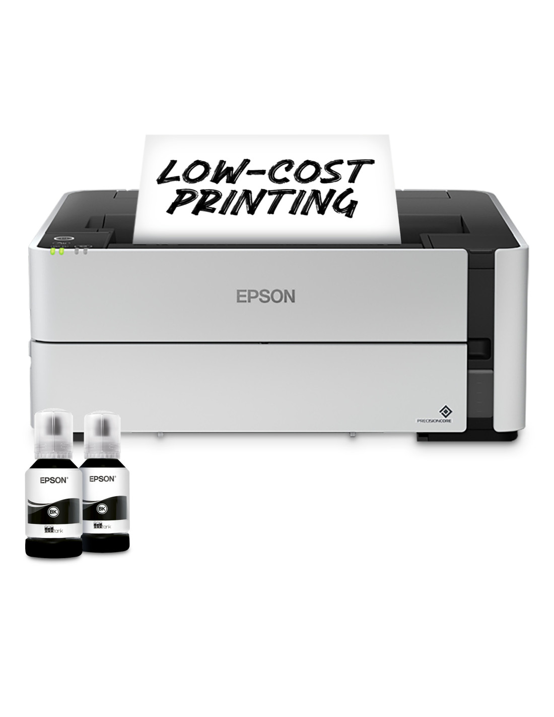 Epson EcoTank ET-M1170. Ciclo de trabajo (máximo): 20000 páginas por mes. Resolución máxima: 1200 x 2400 DPI. Tamaño máximo de papel ISO A-series: A4. Velocidad de impresión (negro, calidad normal, A4/US Carta): 39 ppm. Impresión dúplex. Wifi. Color del producto: Gris