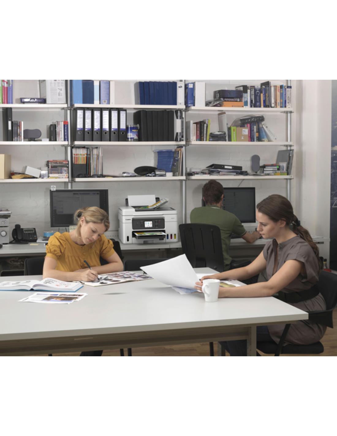 Canon MAXIFY GX4050. Tecnología de impresión: Inyección de tinta, Impresión: Impresión a color, Resolución máxima: 600 x 1200 DPI. Copiando: Copia a color. Escaneando: Escaneo a color, Resolución óptica de escáner: 1200 x 2400 DPI. Enviando por fax: Fax a color. Funciones dúplex: Copiar, Imprimir. Tamaño máximo de papel ISO A-series: A4. Wifi. Impresión directa. Color del producto: Negro, Blanco