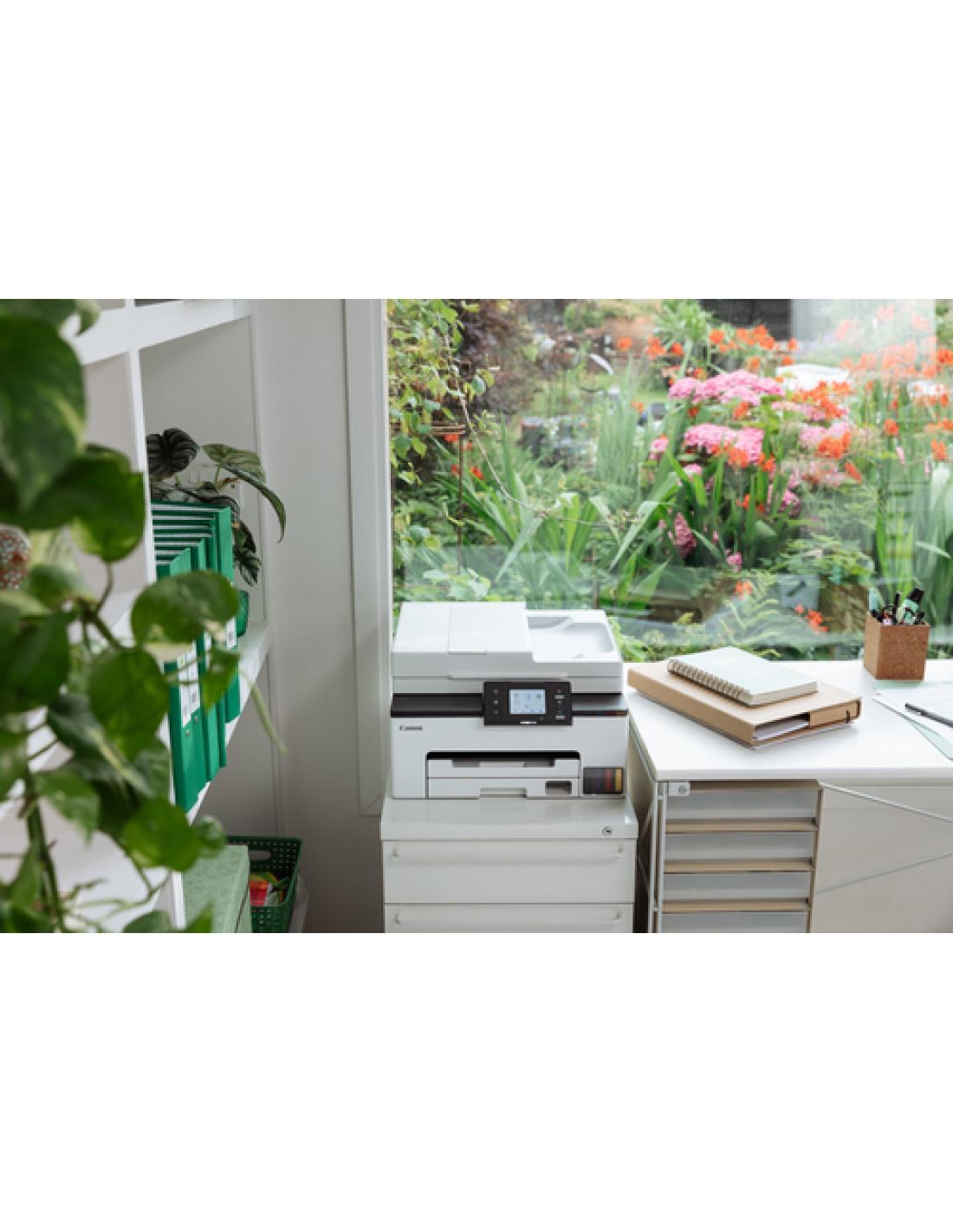 Canon MAXIFY GX2050. Tecnología de impresión: Inyección de tinta, Impresión: Impresión a color, Resolución máxima: 600 x 1200 DPI. Copiando: Copia a color. Escaneando: Escaneo a color, Resolución óptica de escáner: 1200 x 2400 DPI. Enviando por fax: Fax a color. Funciones dúplex: Imprimir. Tamaño máximo de papel ISO A-series: A4. Wifi. Color del producto: Negro, Blanco