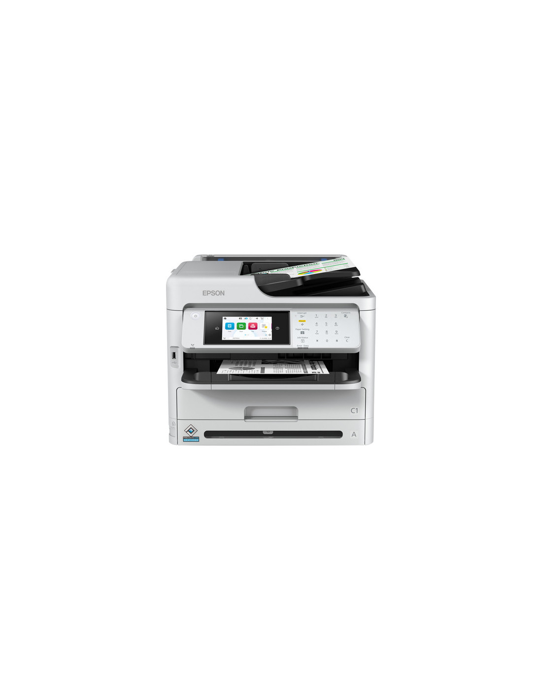 Epson WorkForce Pro WF-M5899DWF. Tecnología de impresión: Inyección de tinta, Impresión: Impresión en blanco y negro, Resolución máxima: 1200 x 2400 DPI. Copiando: Copias en blanco y negro, Resolución máxima de copia: 600 x 1200 DPI. Escaneando: Escaneo a color, Resolución óptica de escáner: 1200 x 2400 DPI. Enviando por fax: Fax a color. Funciones dúplex: Imprimir, Escanear. Tamaño máximo de papel ISO A-series: A4. Wifi. Impresión directa. Color del producto: Negro, Blanco
