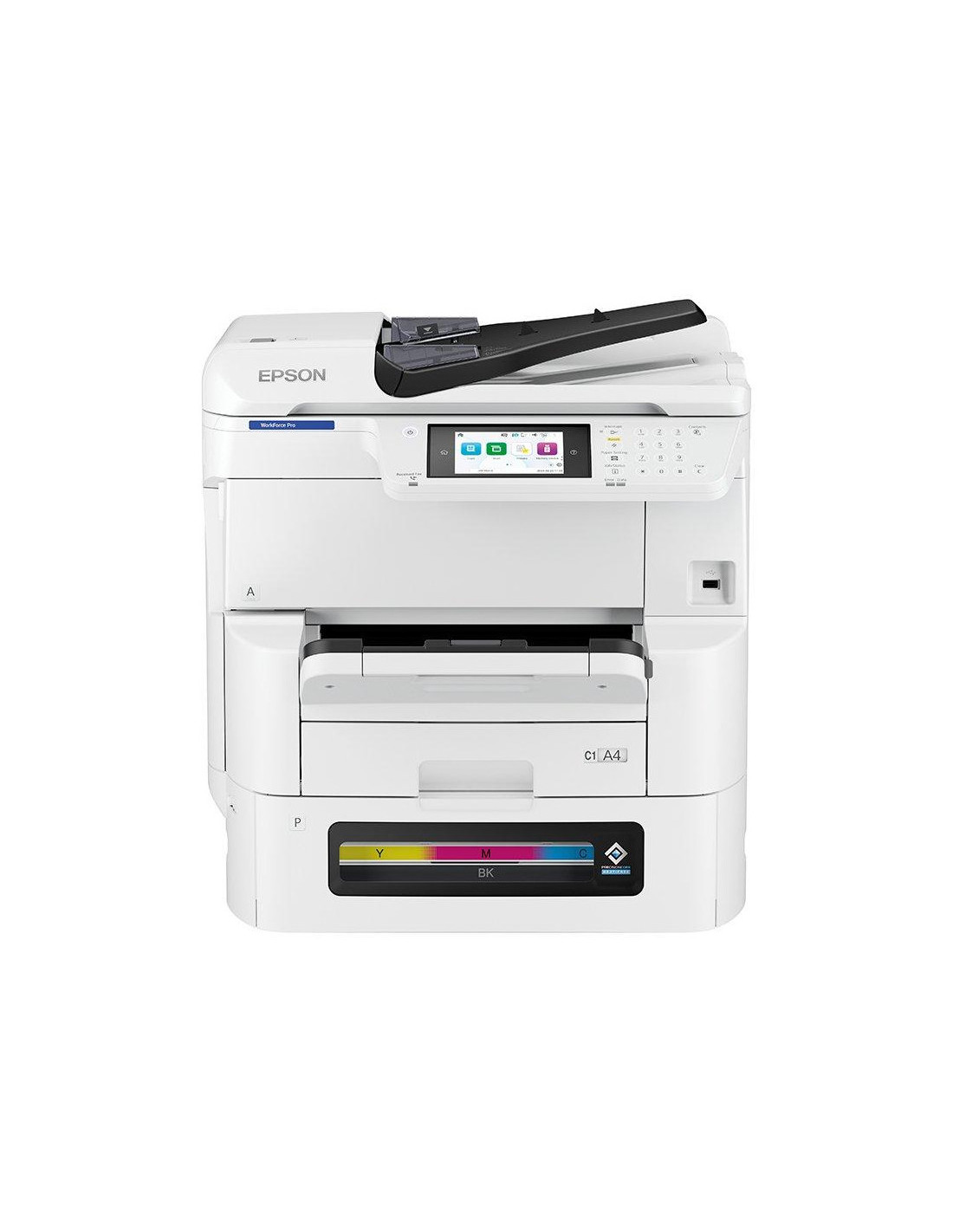Alta durabilidad y baja intervención con impresión, copia, escaneado y fax. La pantalla táctil en color de 12,7 cm facilita un manejo y funcionamiento sin problemas, además de una fácil integración en tu flota Epson mixta.