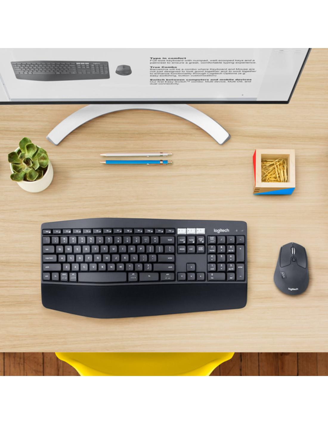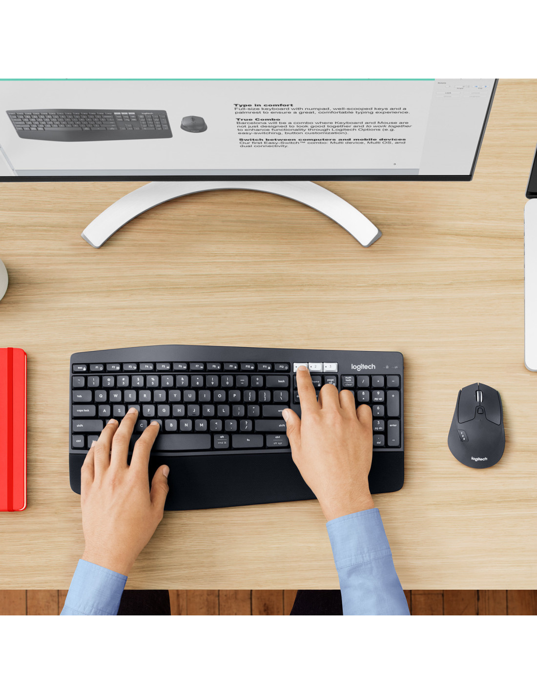 Disfruta de un nivel superior de comodidad y productividad con la eficacia de MK850 Performance. Domina la situación cómodamente, con un reposamanos blando, una estructura de teclas curvada y un ratón contorneado. Cambia de pantalla usando el teclado o el ratón, para trabajar en varias tareas simultáneamente.