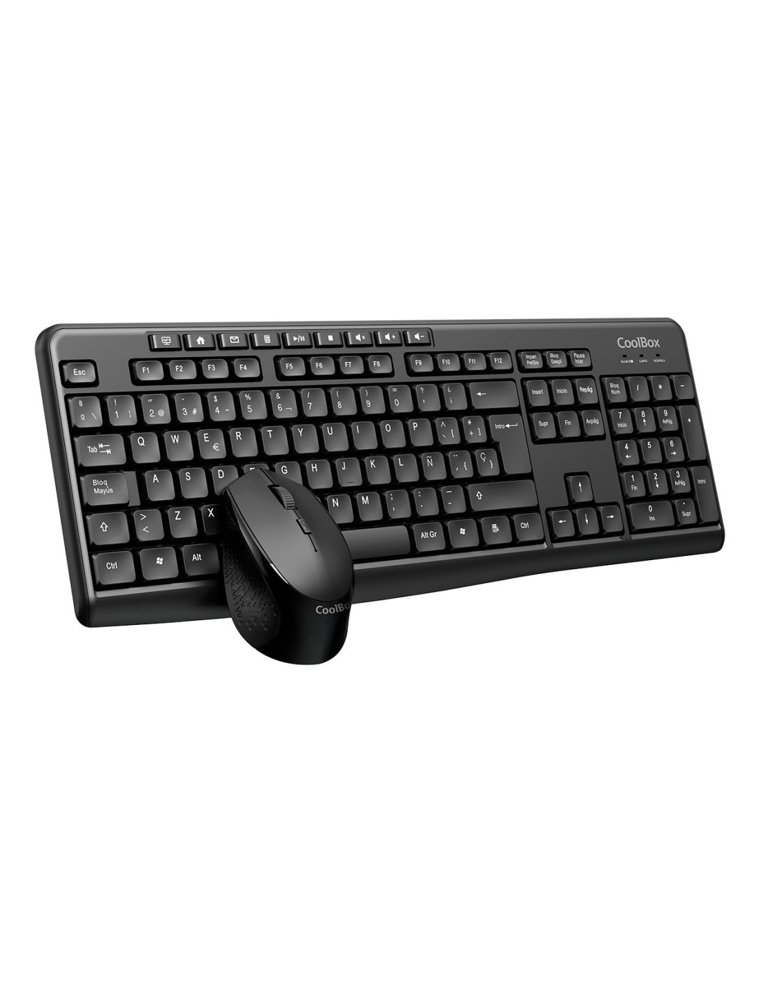 Kit completo de teclado y ratón wireless con todo lo necesario para un cómodo uso ofimático. La alimentación requiere de 2 pilas AAA para el teclado y 1 pila AA para el ratón.