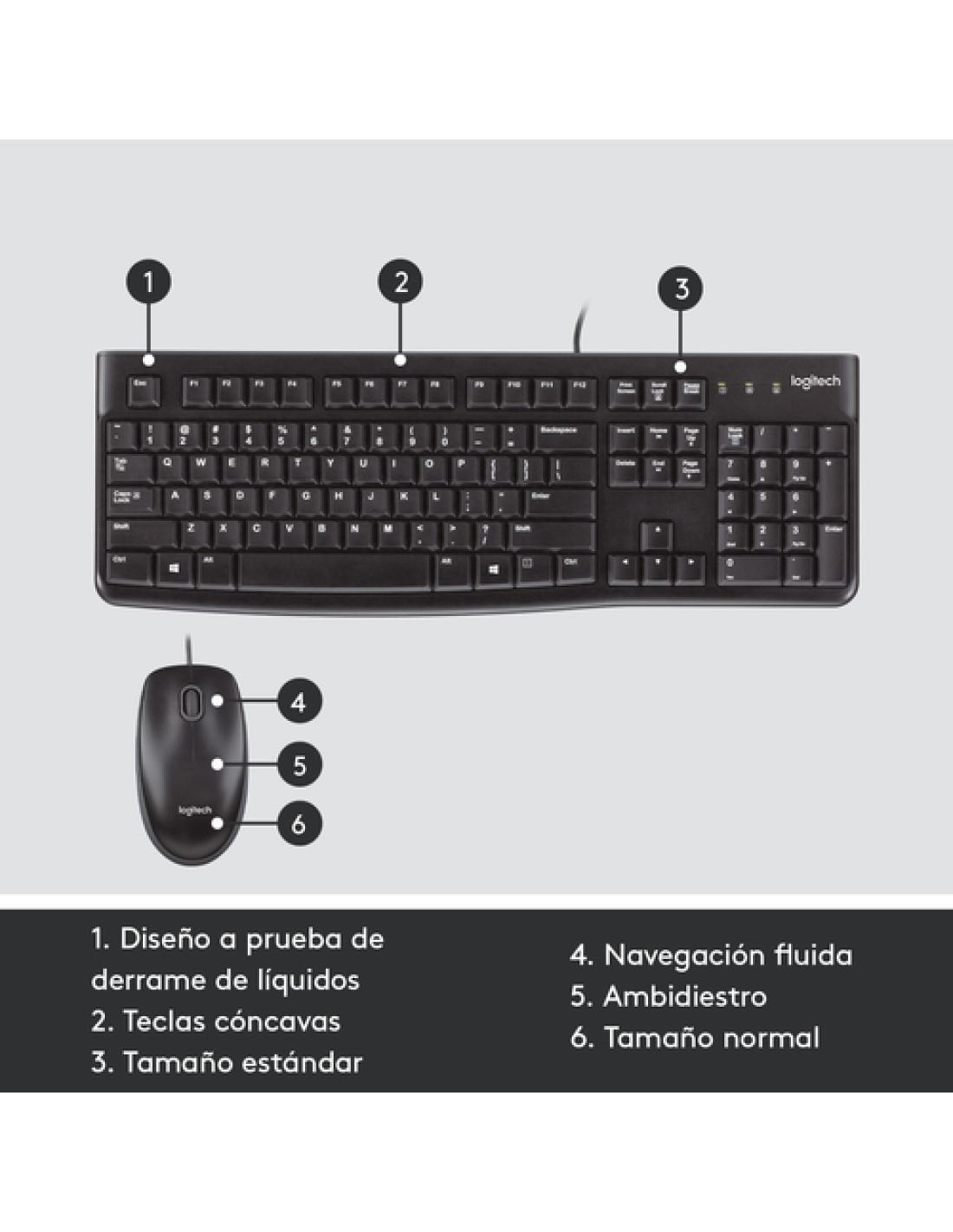 Logitech MK120, Alámbrico, USB, QWERTY, Negro, Ratón incluido
