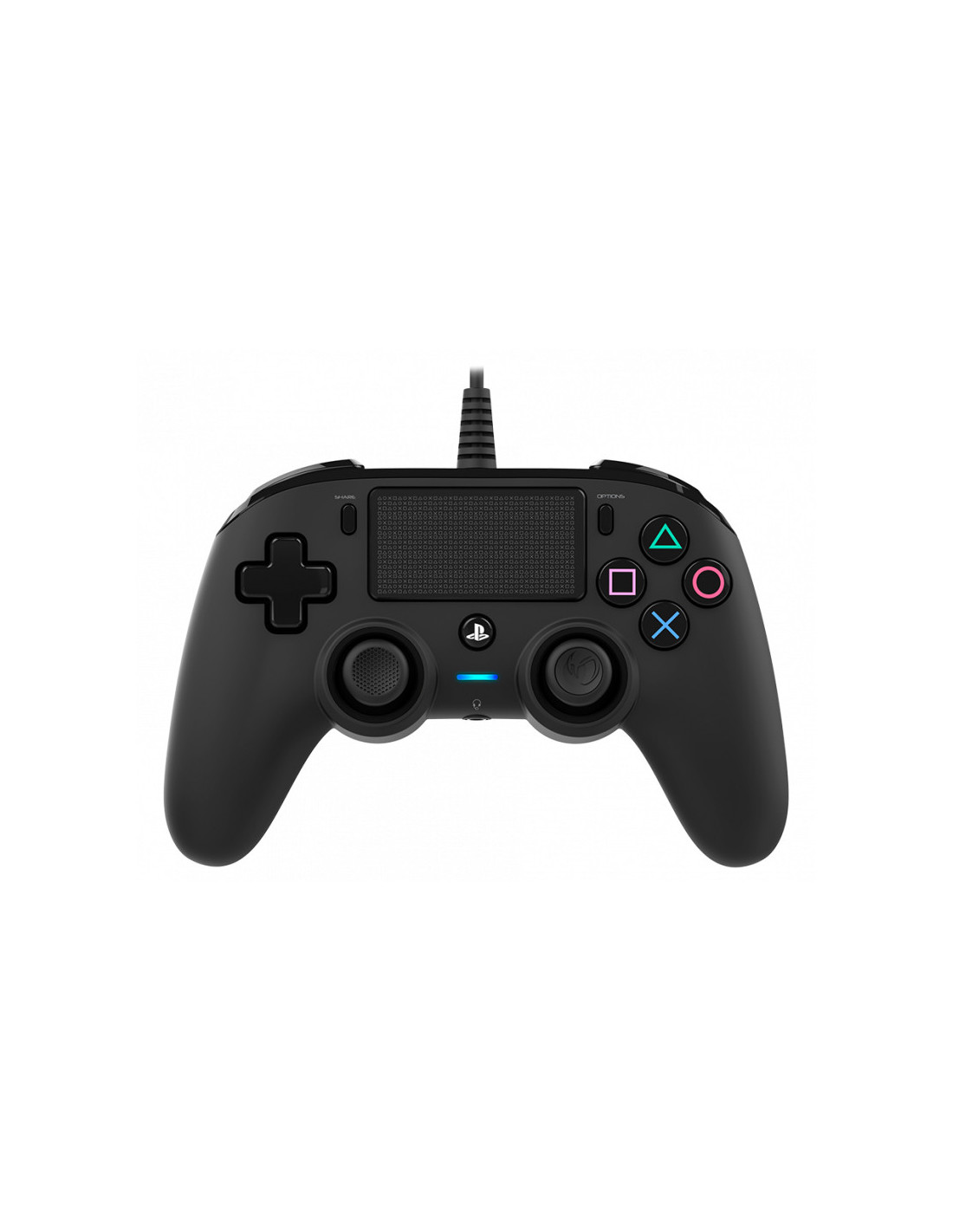 El mando compacto con cable de NACON cuenta con licencia oficial para sistemas PS4™ y ofrece una gama de características esenciales, como un panel táctil, función de vibración y un indicador de estado LED. También incluye botones de acción con los símbolos y colores de PlayStation®, además de botones SHARE, OPTIONS y PS.