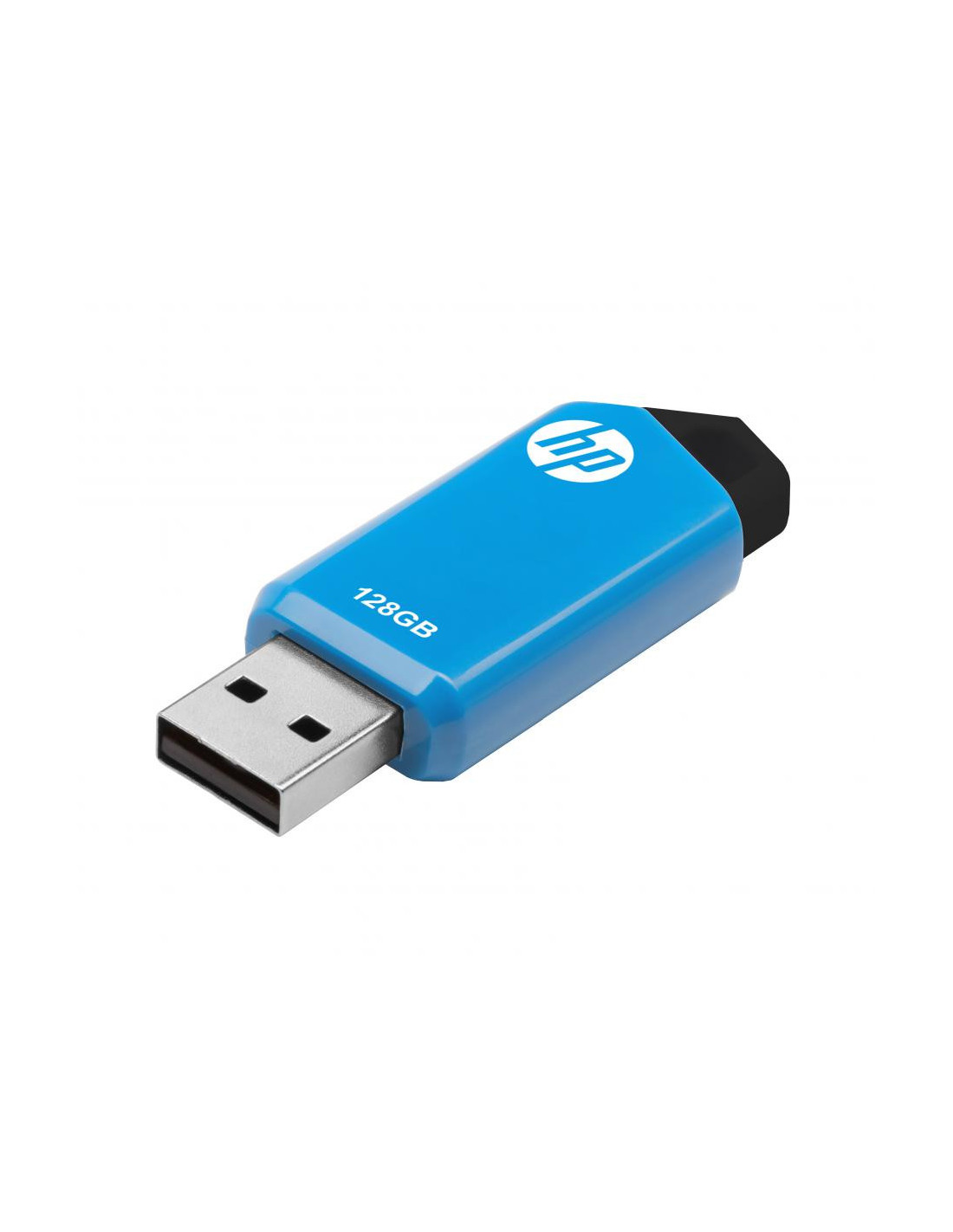 HP v150w. Capacidad: 128 GB, Interfaz del dispositivo: USB tipo A, Versión USB: 2.0, Velocidad de lectura: 14 MB/s, Velocidad de escritura: 4 MB/s. Factor de forma: Deslizar. Peso: 8,8 g. Color del producto: Negro, Azul