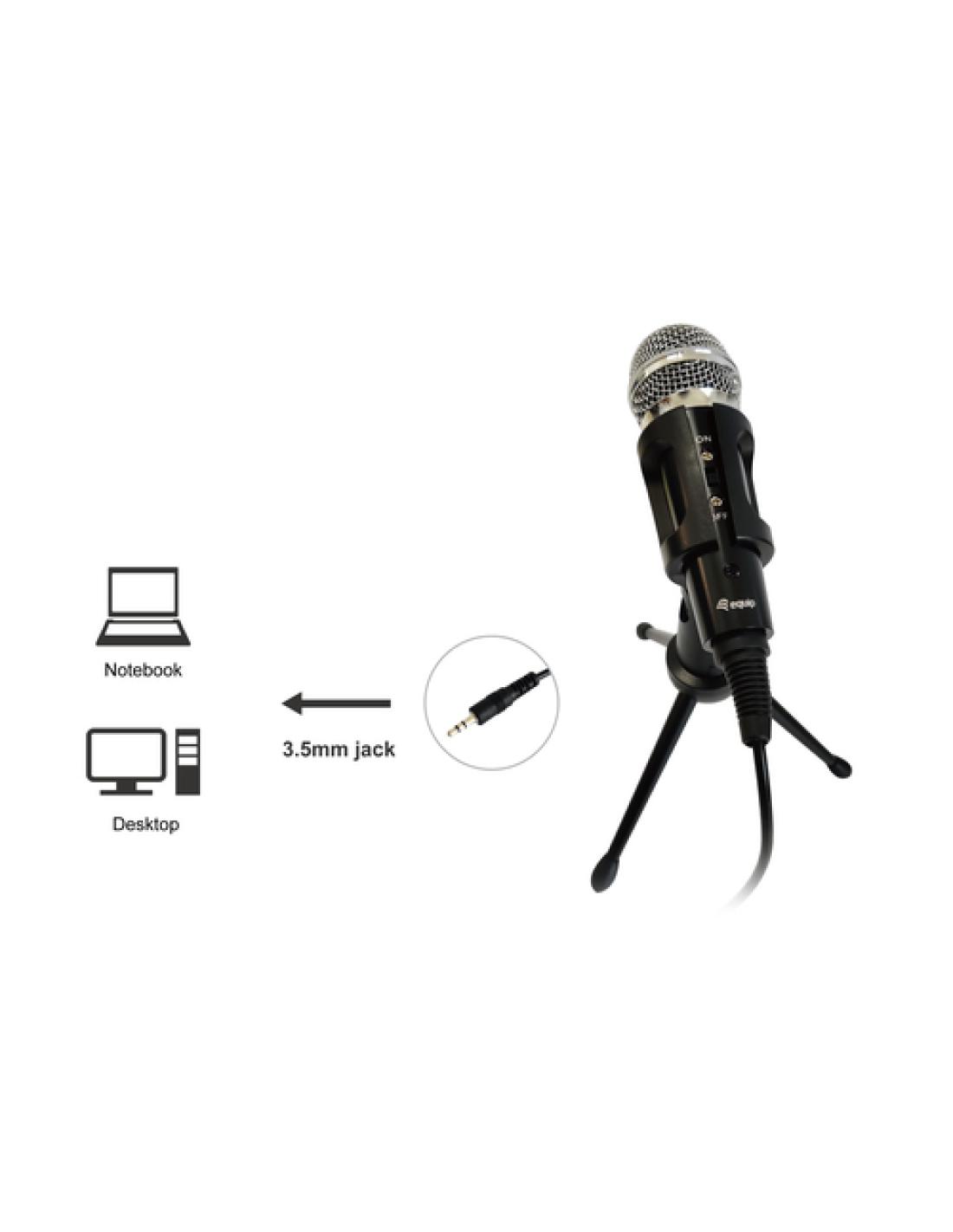 Equip 245341. Tipo: Micrófono de superficie para mesa, Sensibilidad de micrófono: -30 dB, Frecuencia de micrófono: 30 - 16000 Hz. Tecnología de conectividad: Alámbrico, Interfaz del dispositivo: 3.5 mm (1/8 "). Color del producto: Negro, Material de la carcasa: Metal, Plástico, Tipo de montaje: Mesa. Ancho: 38 mm, Profundidad: 140 mm, Altura: 38 mm. Ancho del paquete: 87 mm, Profundidad del paquete: 43 mm, Altura del paquete: 225 mm
