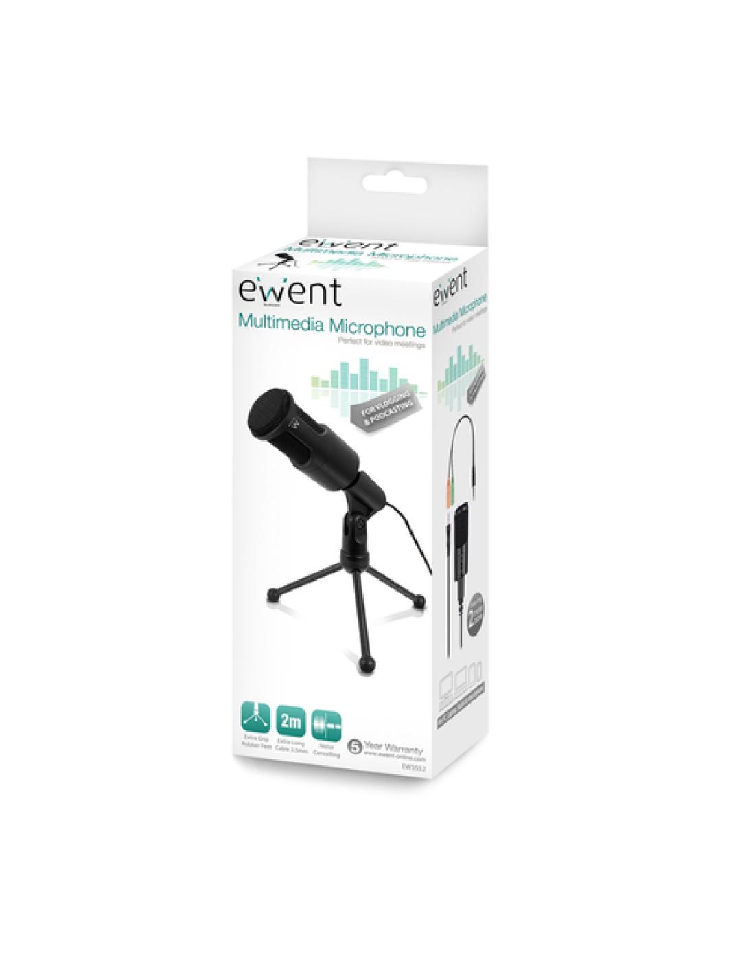 Ewent EW3552. Tipo: Micrófono para PC, Sensibilidad de micrófono: -30 dB, Frecuencia de micrófono: 50 - 16000 Hz. Tecnología de conectividad: Alámbrico, Interfaz del dispositivo: 3.5 mm (1/8 "). Color del producto: Negro, Longitud de cable: 2 m. Ancho: 130 mm, Profundidad: 50 mm, Altura: 50 mm