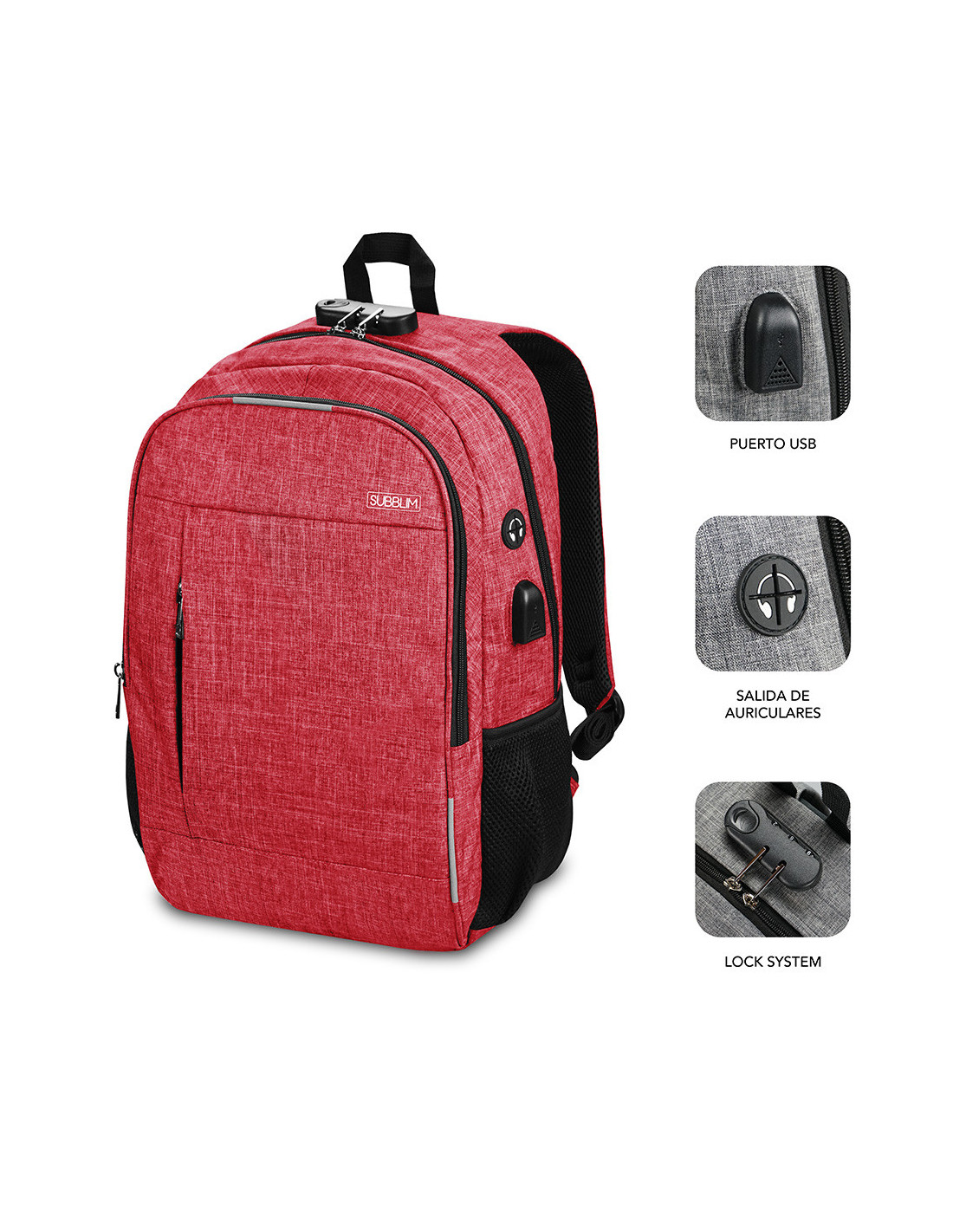 SUBBLIM Mochila para Portátil Urban Lock Backpack 16" Red
