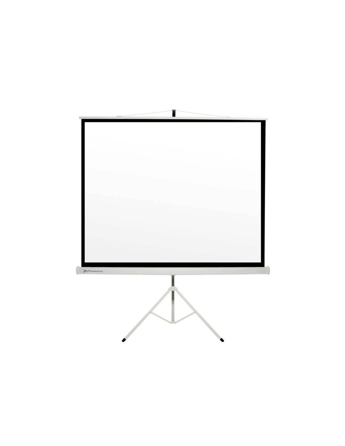 Pantalla manual tripode videoproyector phoenix 80p 1.45mx1.45m posicion ajustable carcasa blanca tela super resistente PHPANTALL
