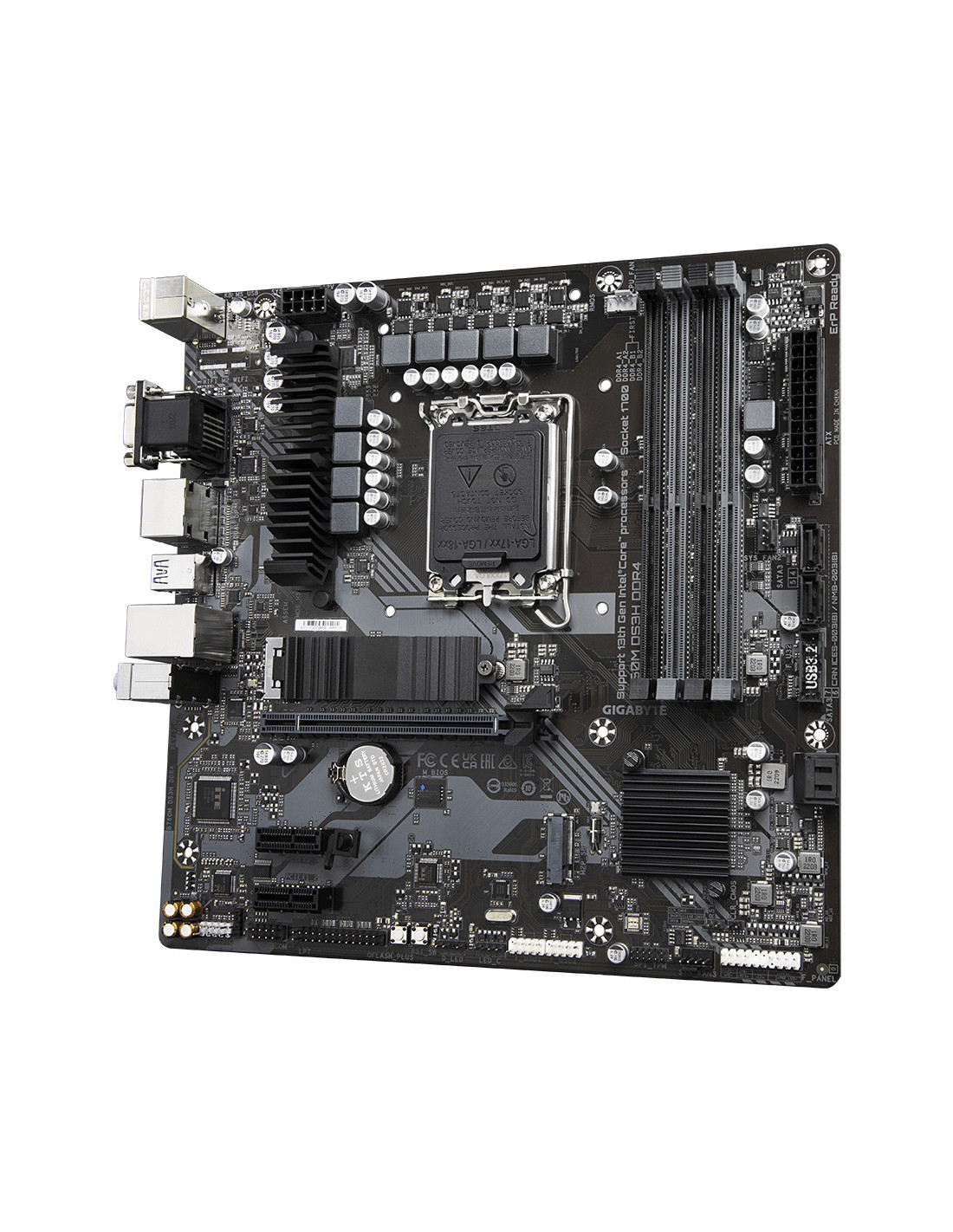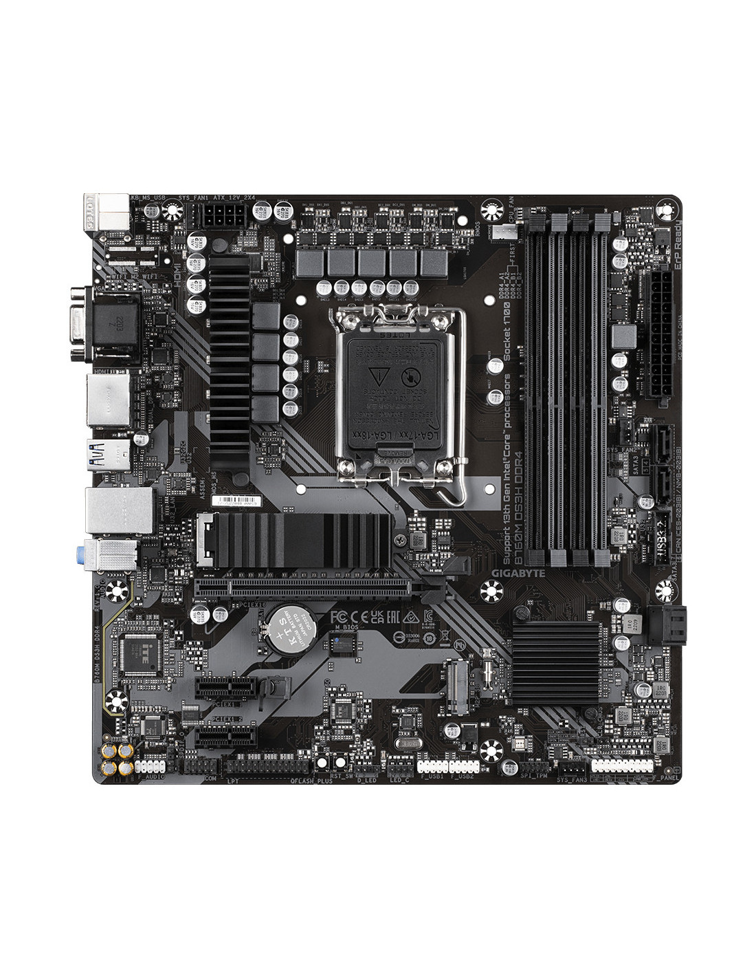 GIGABYTE B760M DS3H DDR4 Placa base - Soporta CPUs Intel Core de 14ª generación, VRM digital de 6+2+1 fases, hasta 5333MHz DDR4 (OC), 2xPCIe 4.0 M.2, LAN 2.5GbE, USB 3.2 Gen2. Fabricante de procesador: Intel, Socket de procesador: LGA 1700, Procesador compatible: Intel® Celeron®, Intel® Core™ i3, Intel® Core™ i5, Intel® Core™ i7, Intel® Core™ i9,.... tipos de memoria compatibles: DDR4-SDRAM, Memoria interna máxima: 128 GB, Tipo de ranuras de memoria: DIMM. Interfaces de disco de almacenamiento soportados: M.2, SATA III, Tipos de unidades de almacenamiento admitidas: HDD & SSD, Niveles RAID: 0, 1, 5, 10. Máxima resolución: 4096 x 2304 Pixeles. Tipo de interfaz ethernet: 2.5 Gigabit Ethernet