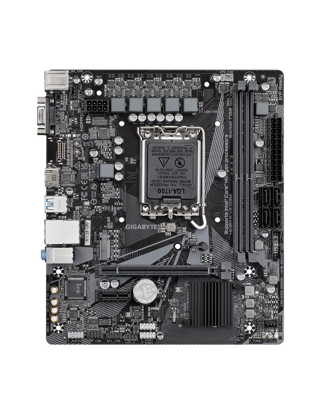 GIGABYTE H610M H V3 DDR4 Placa base - Compatible con procesadores Intel Core 14th CPUs, 4+1+1 Hybrid Phases Digital VRM, up to 3200MHz DDR4, 1xPCIe 3.0 M.2, GbE LAN, USB 3.2 Gen 1. Fabricante de procesador: Intel, Socket de procesador: LGA 1700, Procesador compatible: Intel® Celeron®, Intel® Core™ i3, Intel® Core™ i5, Intel® Core™ i7, Intel® Core™ i9,.... tipos de memoria compatibles: DDR4-SDRAM, Memoria interna máxima: 64 GB, Tipo de ranuras de memoria: DIMM. Interfaces de disco de almacenamiento soportados: M.2, SATA III, Tipos de unidades de almacenamiento admitidas: HDD & SSD. Graphics chipset: Intel, Adaptador gráfico: HD Graphics, Máxima resolución: 4096 x 2304 Pixeles. Conector USB: USB tipo A