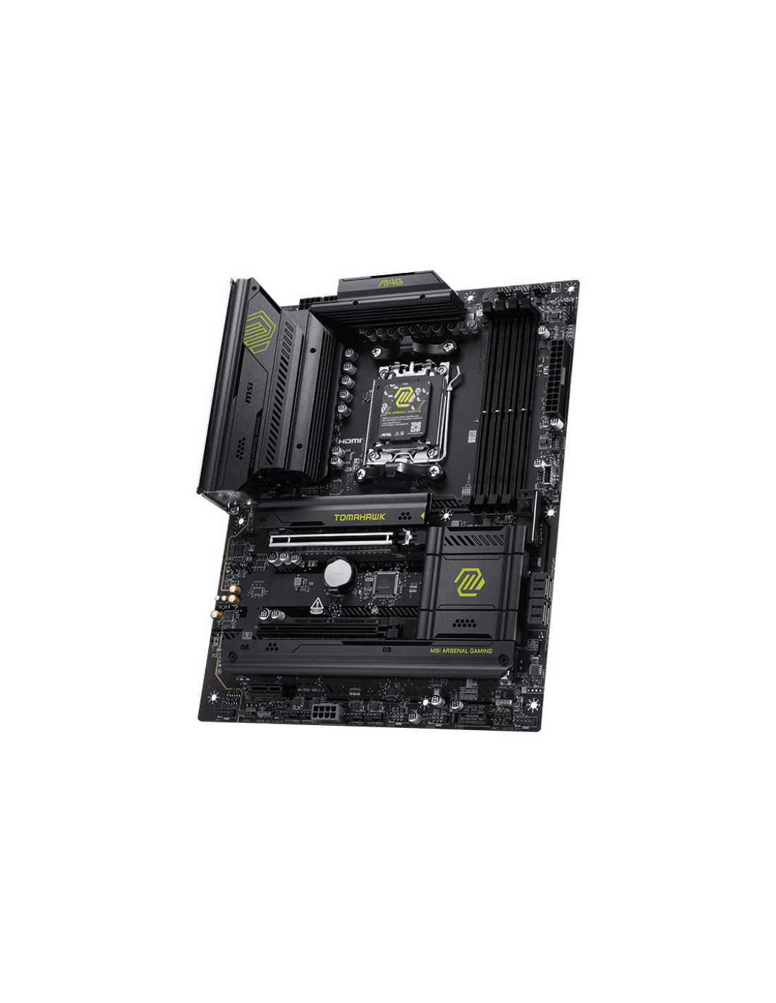 MSI MAG B850 TOMAHAWK WIFI. Fabricante de procesador: AMD, Socket de procesador: Zócalo AM5, Procesador compatible: AMD Ryzen 7000 Series, AMD Ryzen 8000 Series, AMD Ryzen 9000 Series. tipos de memoria compatibles: DDR5-SDRAM, Memoria interna máxima: 256 GB, Tipo de ranuras de memoria: DIMM. Interfaces de disco de almacenamiento soportados: M.2, Micro SATA III, Tipos de unidades de almacenamiento admitidas: HDD & SSD, Niveles RAID: 0, 1, 10. Tipo de interfaz ethernet: 5 Gigabit Ethernet, Estándar Wi-Fi: Wi-Fi 7 (802.11be), Wi-Fi estándares: 802.11a, 802.11b, 802.11g, Wi-Fi 4 (802.11n), Wi-Fi 5 (802.11ac), Wi-Fi 6 (802.11ax), Wi-Fi 6E.... Componente para: PC, Factor de forma: ATX, Familia del chipset: AMD
