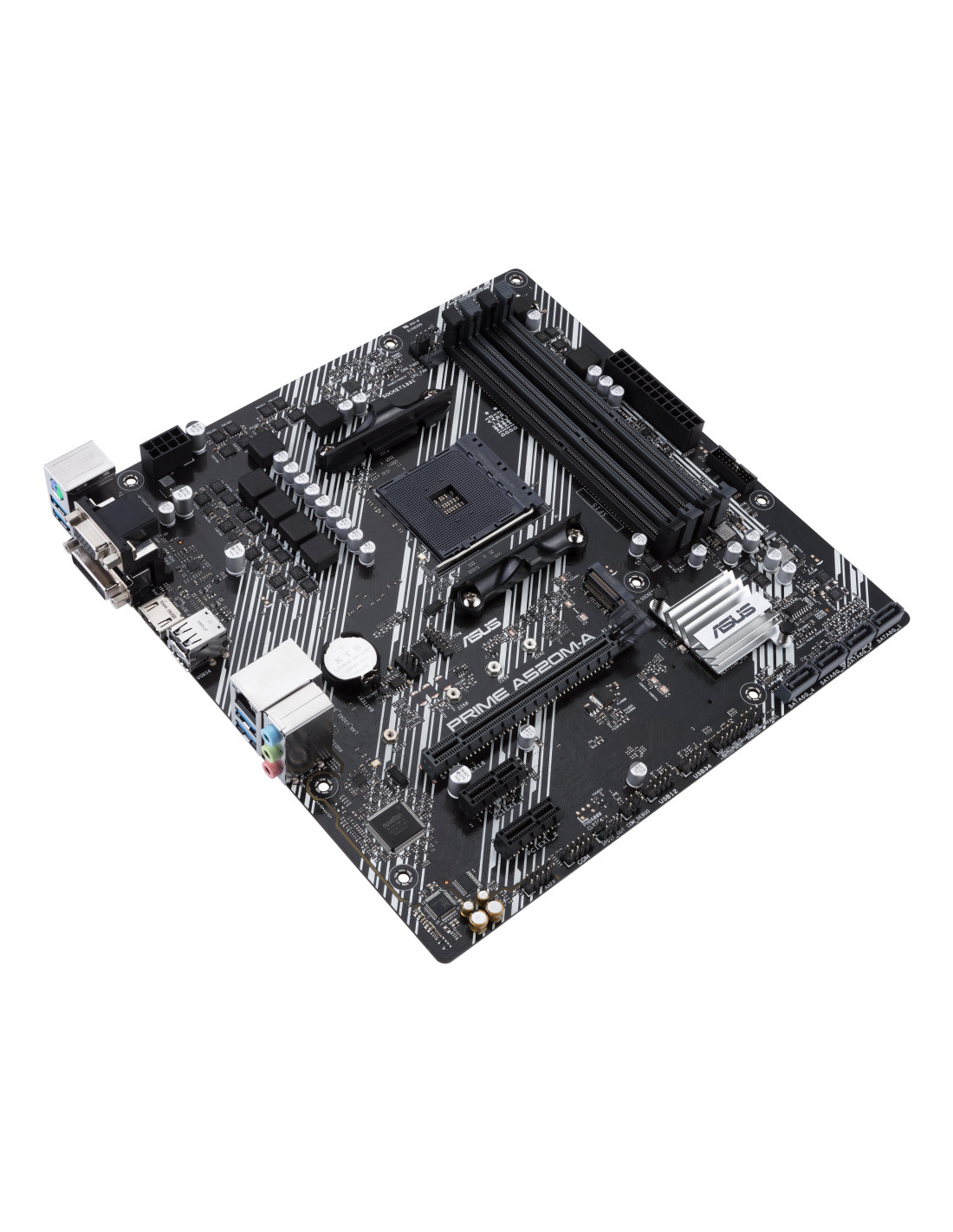 ASUS PRIME A520M-A II/CSM. Fabricante de procesador: AMD, Socket de procesador: Zócalo AM4, Procesador compatible: AMD Ryzen™ 3, AMD Ryzen™ 5. tipos de memoria compatibles: DDR4-SDRAM, Memoria interna máxima: 128 GB, Tipo de ranuras de memoria: DIMM. Interfaces de disco de almacenamiento soportados: M.2, SATA III, Tipos de unidades de almacenamiento admitidas: HDD & SSD, Niveles RAID: 0, 1, 10. Conector USB: USB tipo A. Tipo de interfaz ethernet: Gigabit Ethernet