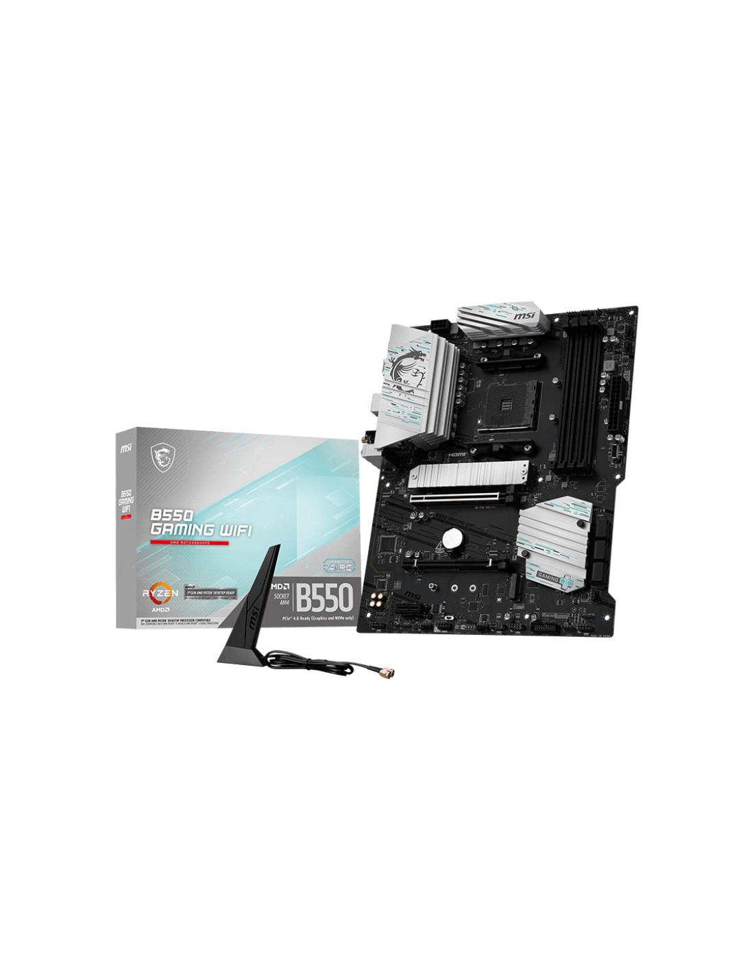 B550 GAMING WIFILa B550 GAMING WIFI está diseñada para ofrecer una amplia conectividad, herramientas versátiles y una solución Wi-Fi para los jugadores que buscan una experiencia completa. Con una solución LAN 1G, Wi-Fi y PCIe 4.0, está preparada para jugar sin parar las 24 horas del día, los 7 días de la semana, y está optimizada para los procesadores AMD Ryzen™ de las series 5000, 5000 G, 4000 G y 3000.
