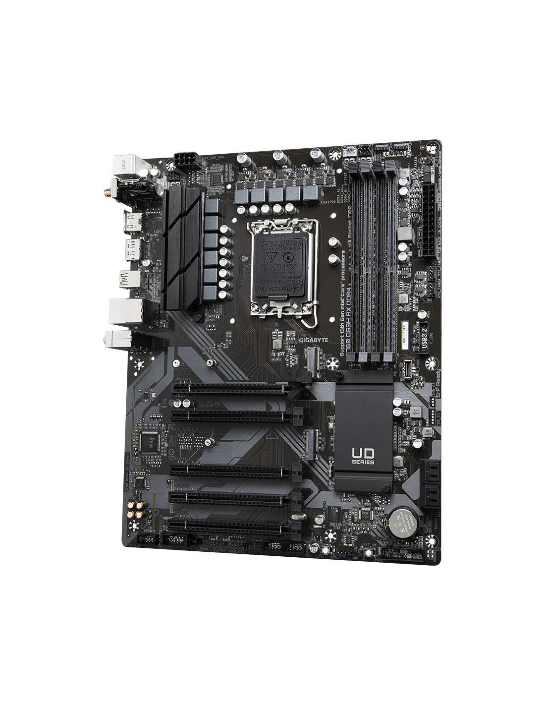 GIGABYTE B760 DS3H AX DDR4 Placa Base - Compatible con procesadores Intel Core de 14ª generación, VRM digital de 8+2+1 fases, hasta 5333MHz DDR4 (OC), 2x PCIe 4.0 M.2, Wi-Fi 6E, GbE LAN, USB 3.2 Gen 2. Fabricante de procesador: Intel, Socket de procesador: LGA 1700, Procesador compatible: Intel® Celeron®, Intel® Core™ i3, Intel® Core™ i5, Intel® Core™ i7, Intel® Core™ i9,.... tipos de memoria compatibles: DDR4-SDRAM, Memoria interna máxima: 128 GB, Tipo de ranuras de memoria: DIMM. Interfaces de disco de almacenamiento soportados: M.2, PCI Express 4.0, SATA III, Tipos de unidades de almacenamiento admitidas: HDD & SSD, Niveles RAID: 0, 1, 5, 10. Máxima resolución: 4096 x 2304 Pixeles. Conector USB: USB tipo A, USB Tipo C