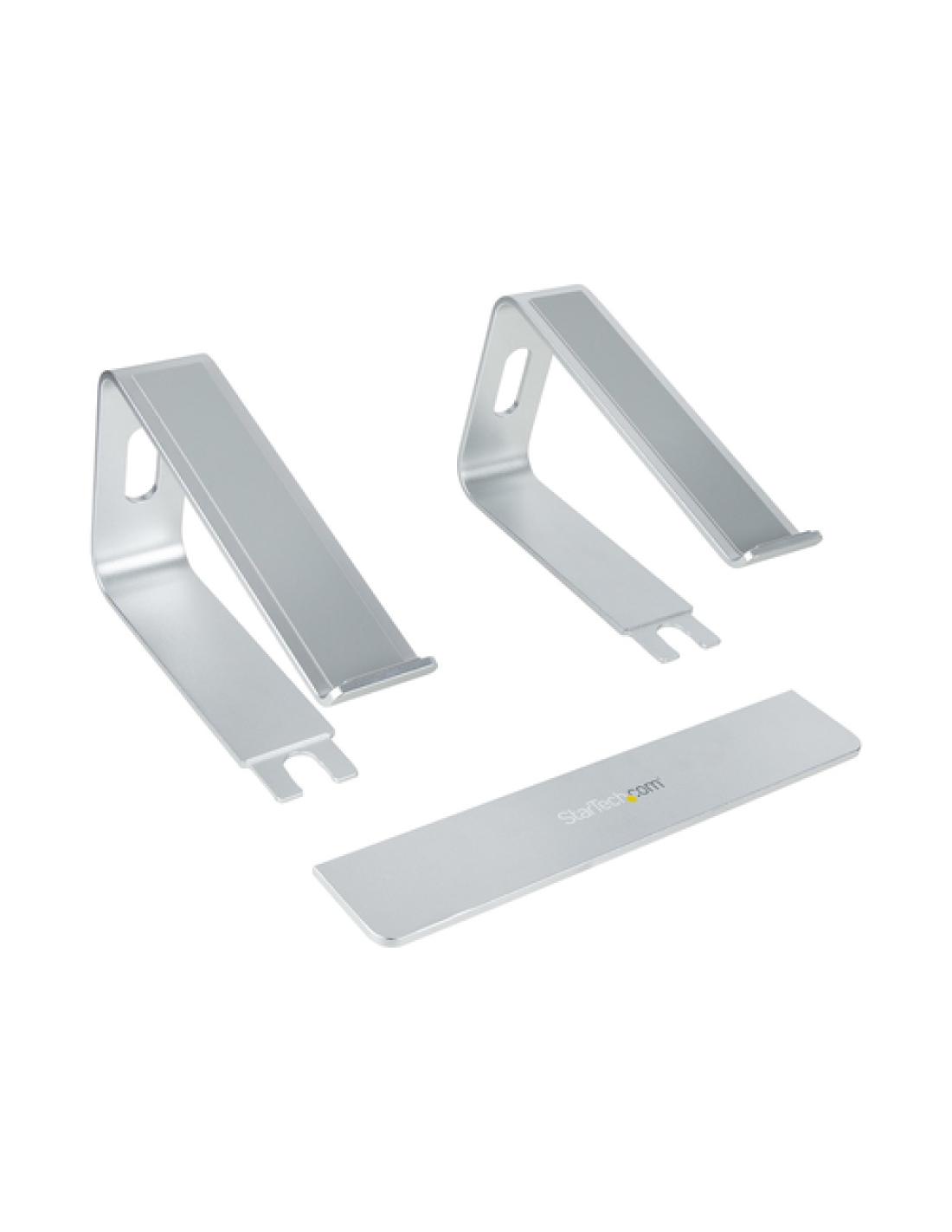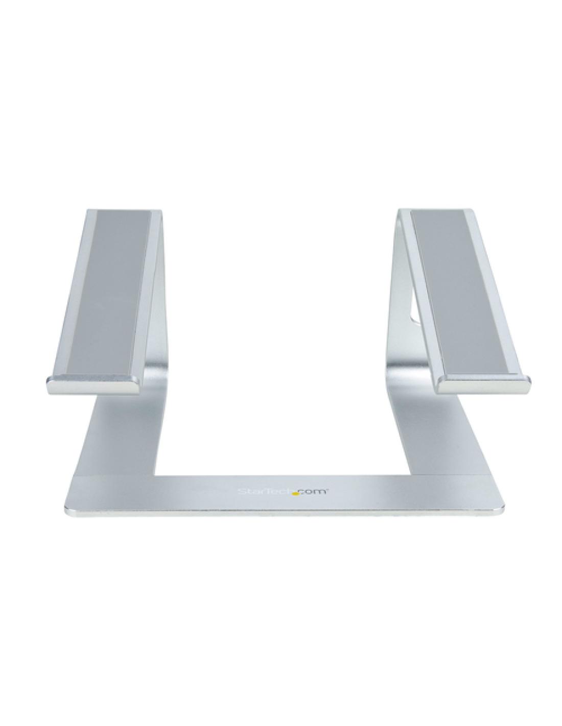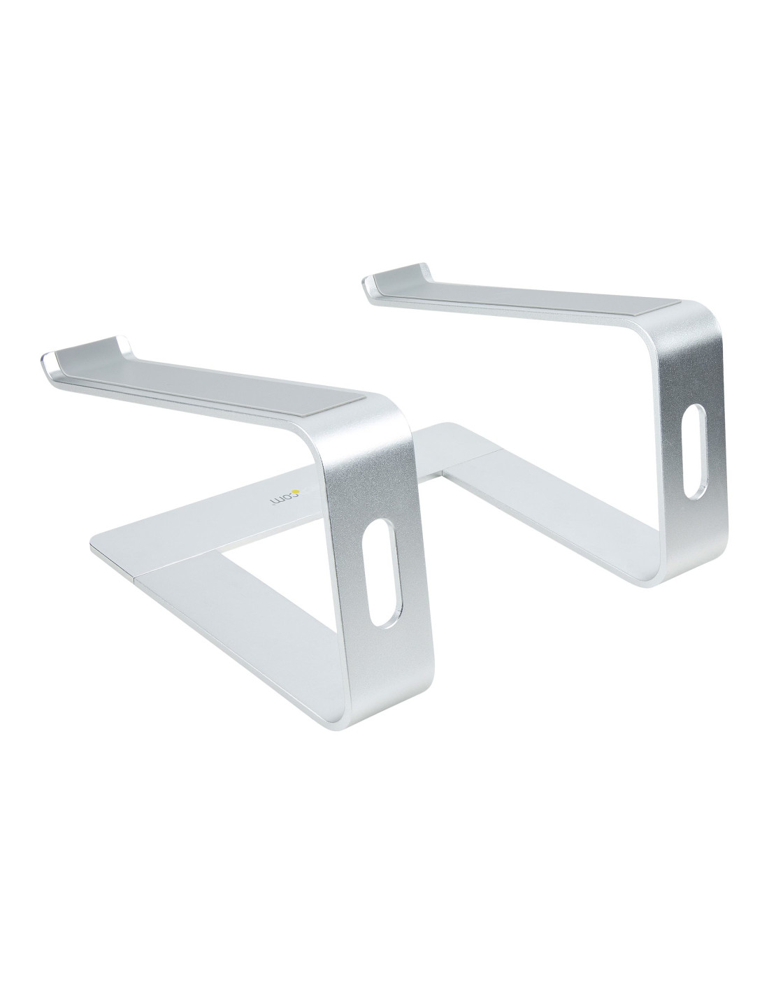 El soporte ergonómico para portátiles está ligeramente inclinado hacia abajo a 16 grados, lo que proporciona un ángulo de visión cómodo. El labio elevado en la parte delantera de los brazos de soporte con la ayuda de las almohadillas de goma en la superficie evita que el portátil se deslice.