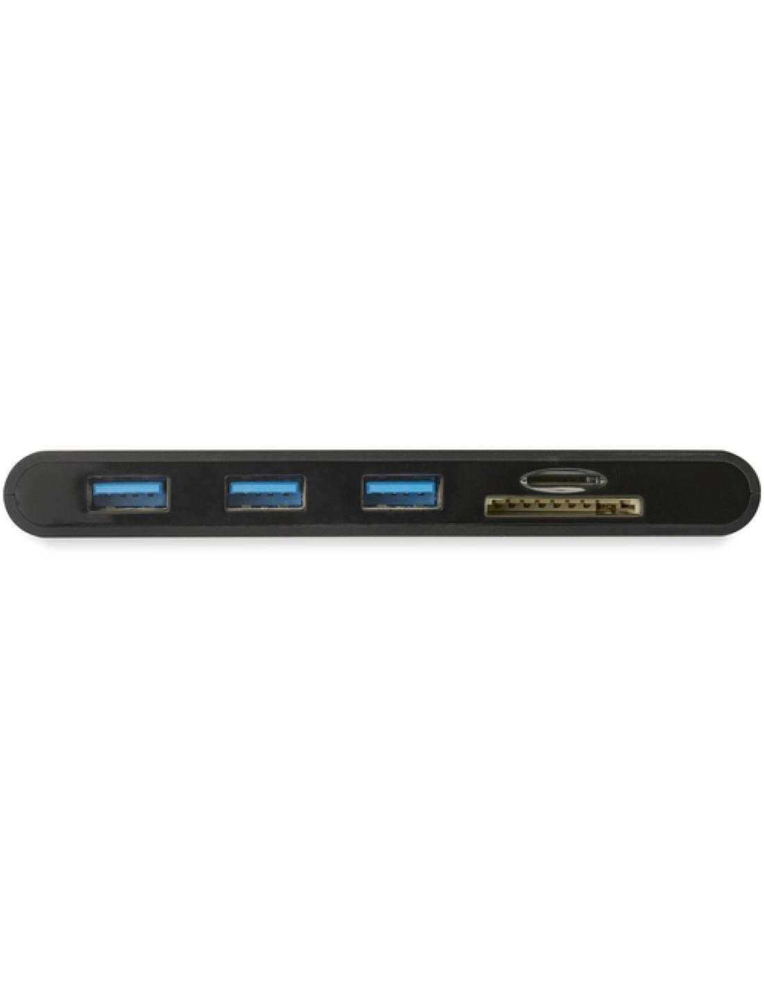 Cargue su ordenador portátil y sus periféricos Gracias a la compatibilidad con entrega de potencia (hasta 85W) por USB 3.0, el adaptador multipuerto USB-C le permite alimentar y cargar su ordenador portátil, así como todos sus periféricos, al mismo tiempo. PD 3.0 incluye la función FRS ("Fast Role Swap"; intercambio rápido de roles) para evitar la interrupción de transmisión de datos por USB al cambiar de fuentes de alimentación (alimentación por bus y adaptador de alimentación por USB-C). Conecte dispositivos USB Conecte sus dispositivos USB mediante tres puertos USB 3.0 (Type-A). Cada puerto USB ofrece sincronización y carga rápida, a fin de garantizar que su tablet y smartphone se carguen y estén listos para su uso. Cada puerto ofrece 7,5W de potencia para carga, con un total combinado de 10W al utilizar los tres puertos. Acceso a tarjetas SD/microSD Acceda simultáneamente al contenido de ranuras de tarjetas SD y microSD, además de transferir fácilmente datos entre una y otra tarjeta. Fácil portabilidad Para facilitar su uso móvil, el adaptador USB-C es de peso ligero y se alimenta mediante bus, además de incluir un cable USB-C enrollable.