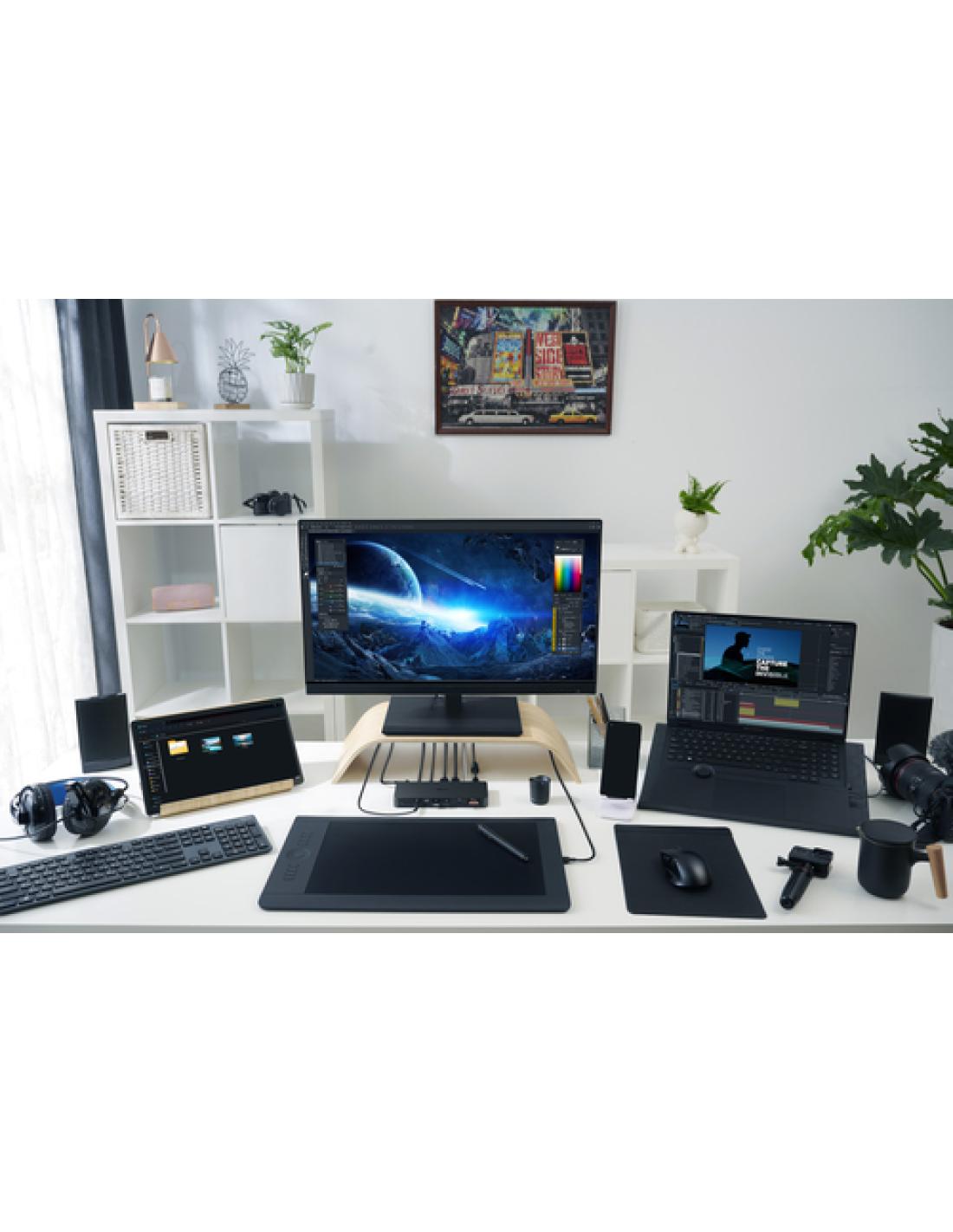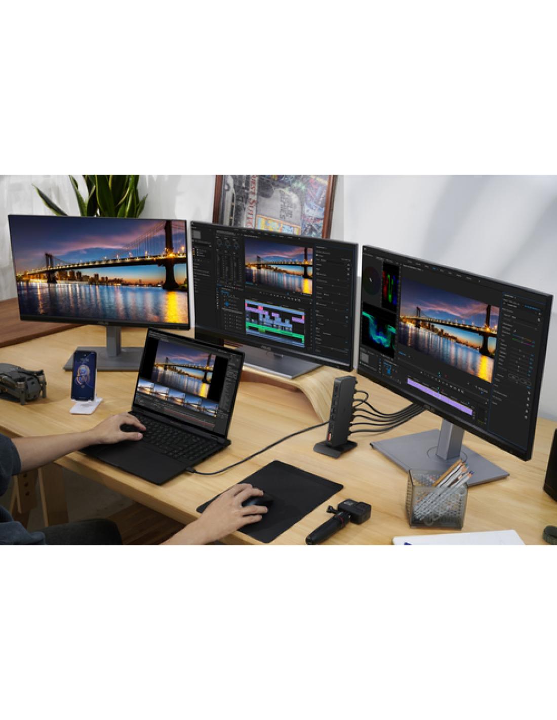 Compatibilidad con tres pantallas 4K y doble HDMI 2.1Con Thunderbolt™ 4 y dos puertos HDMI 2.1, la ASUS Triple 4K Thunderbolt™ 4 Dock ofrece a los creadores la posibilidad de realizar numerosas tareas y trabajar con mayores niveles de detalle a través de un único monitor 8K o un equipo con tres pantallas 4K.