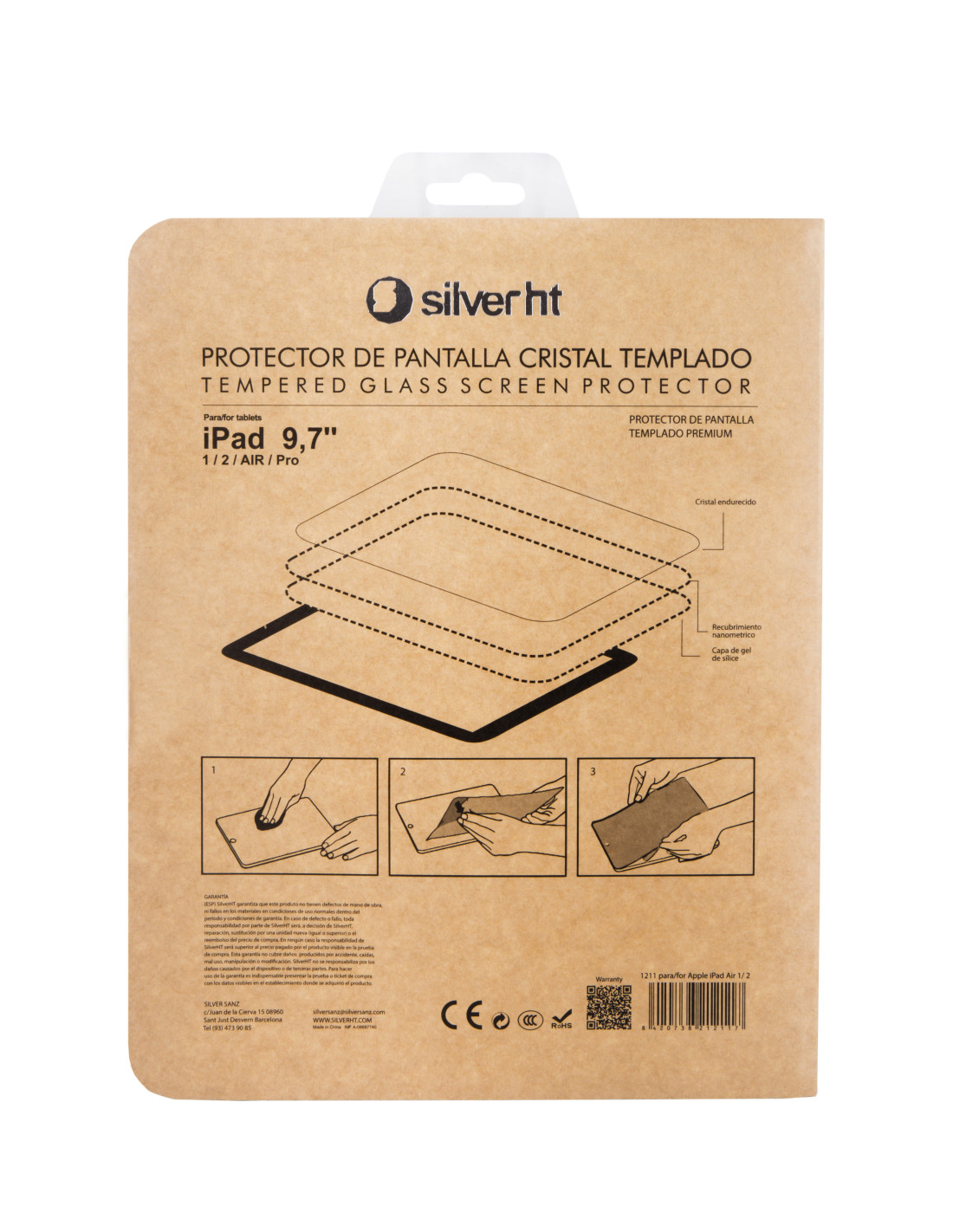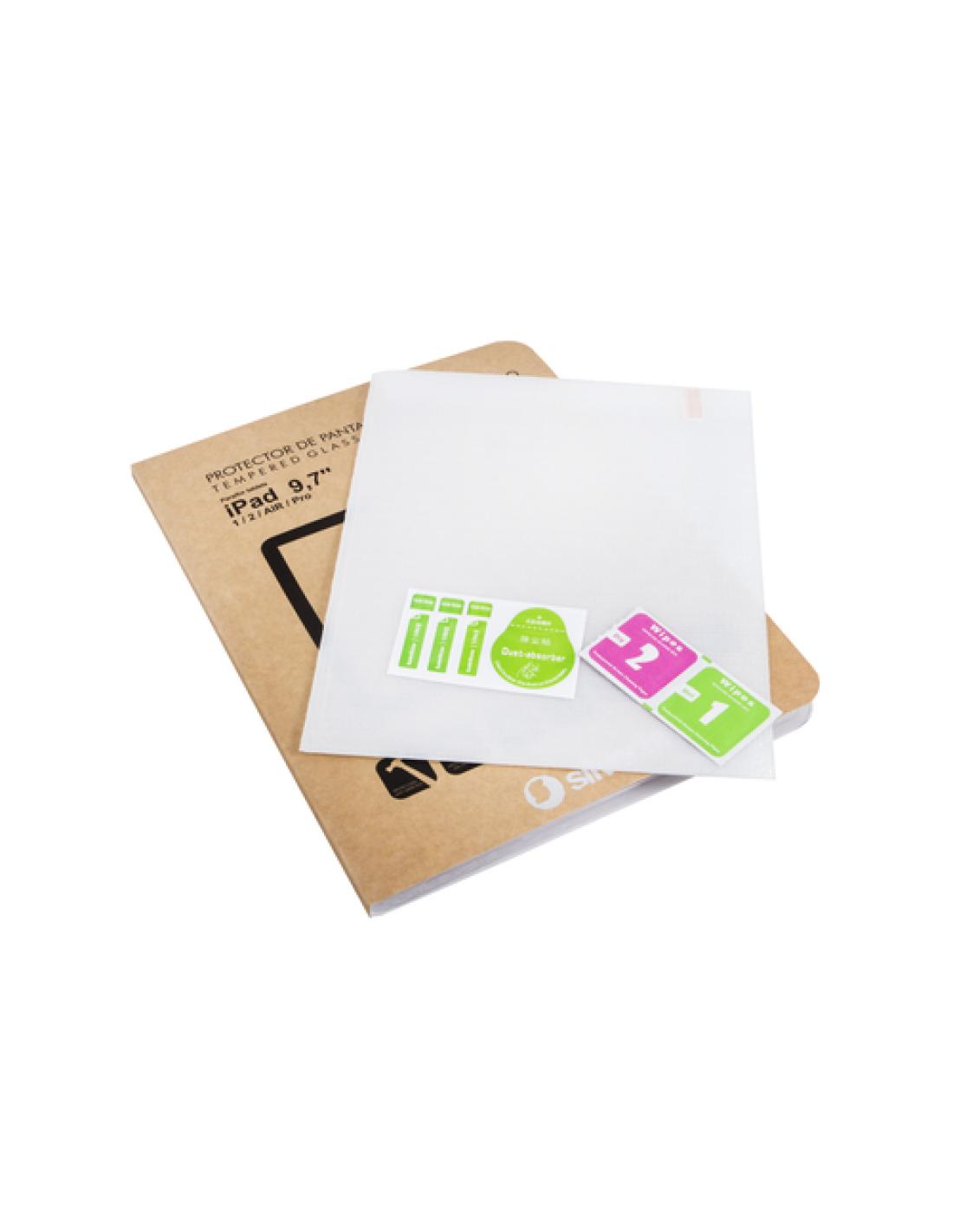SilverHT Protector de pantalla de cristal templado para Apple iPad Air 1 y 2. Tipo de protector de pantalla: Protector de pantalla, Tamaño máximo de pantalla: 24,6 cm (9.7"), Acabado de la superficie: Mate, Material: Vidrio templado, Marca compatible: Apple, Compatibilidad: iPad Air 1, iPad Air 2, iPad Pro. Cantidad por paquete: 1 pieza(s)