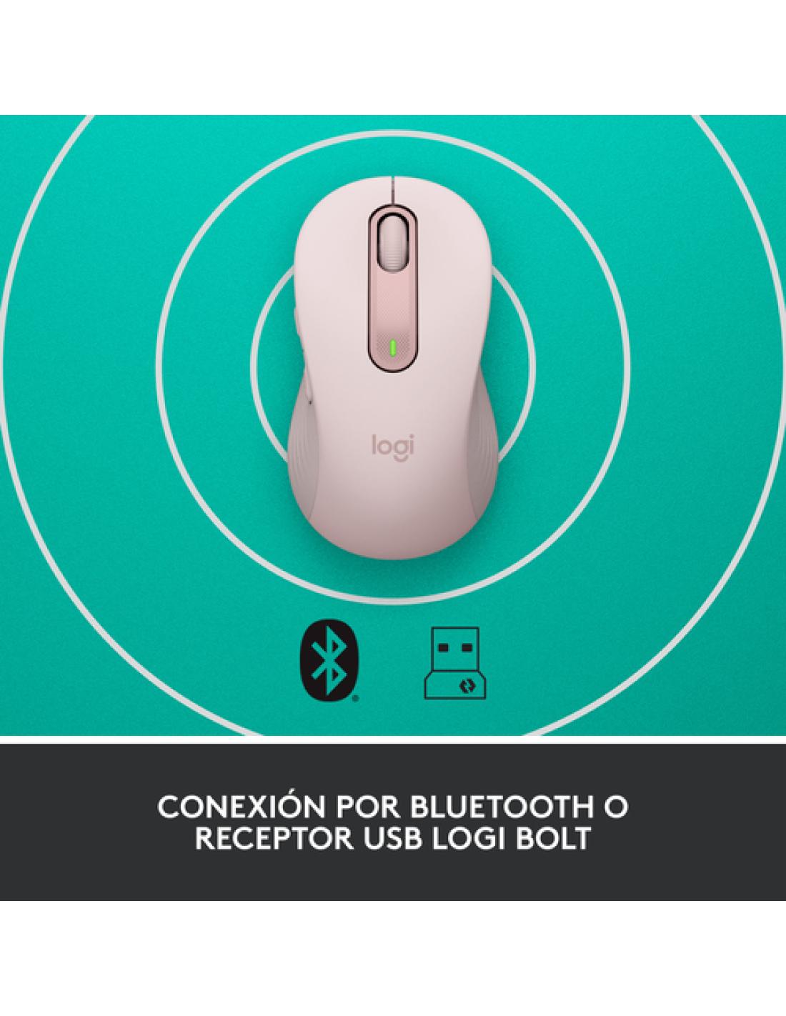 Logitech Signature M650. Factor de forma: mano derecha. Tecnología de detección de movimientos: Óptico, Interfaz del dispositivo: Bluetooth, Resolución de movimiento: 4000 DPI, Tipo de botones: Botones presionados, Cantidad de botones: 5, Tipo de desplazamiento: Rueda. Fuente de energía: Baterías. Color del producto: Rosa
